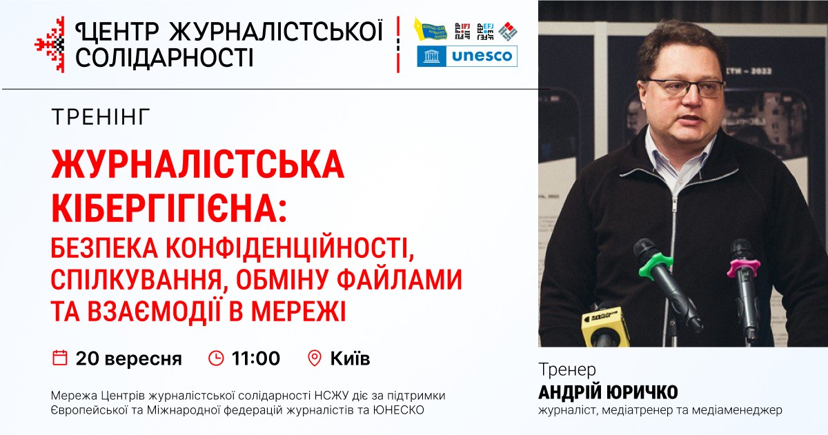 Тренінг НСЖУ «Журналістська кібергігієна: безпека конфіденційності, спілкування, обміну файлами та взаємодії в мережі» (20 вересня 2023 року)