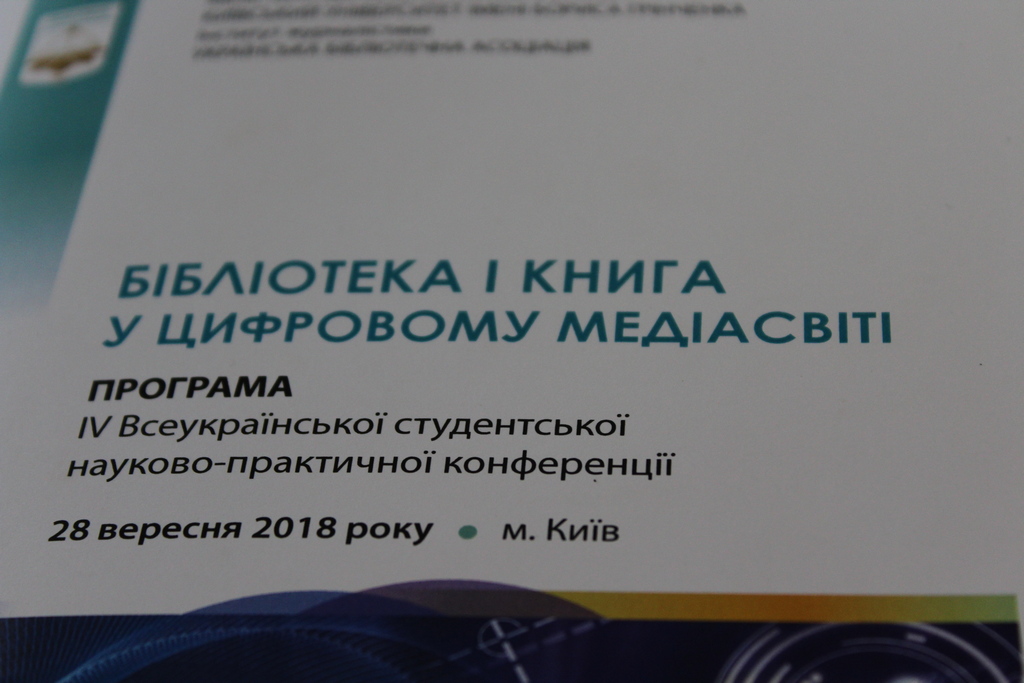 28 вересня 2018 р. у стінах Університету Грінченка відбулась ІV Всеукраїнська студентська науково-практична конференція «Бібліотека і книга у цифровому медіасвіті», організована кафедрою бібліотекознавства та інформології Інституту журналістики у партнерстві з Українською бібліотечною асоціацією.