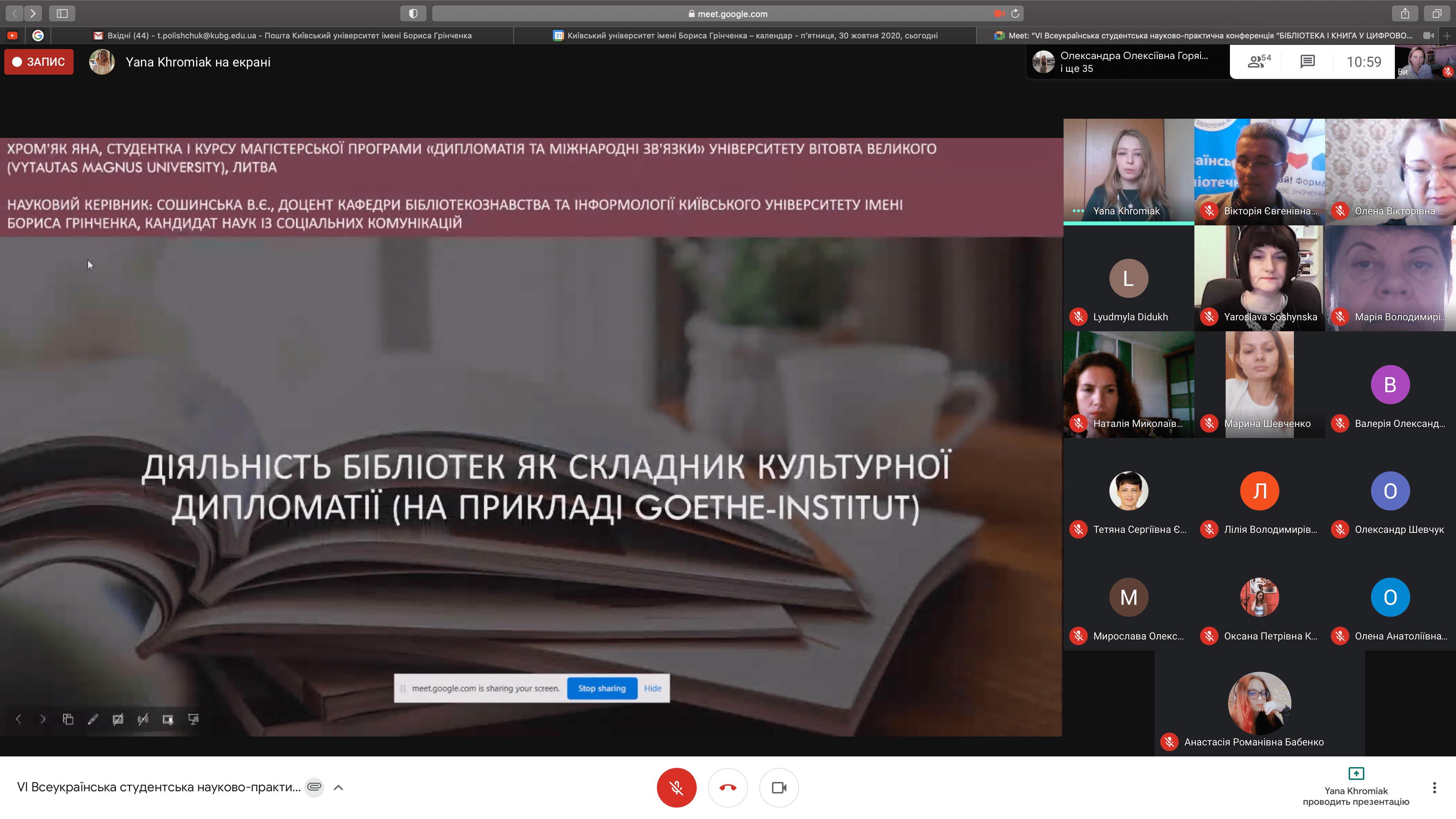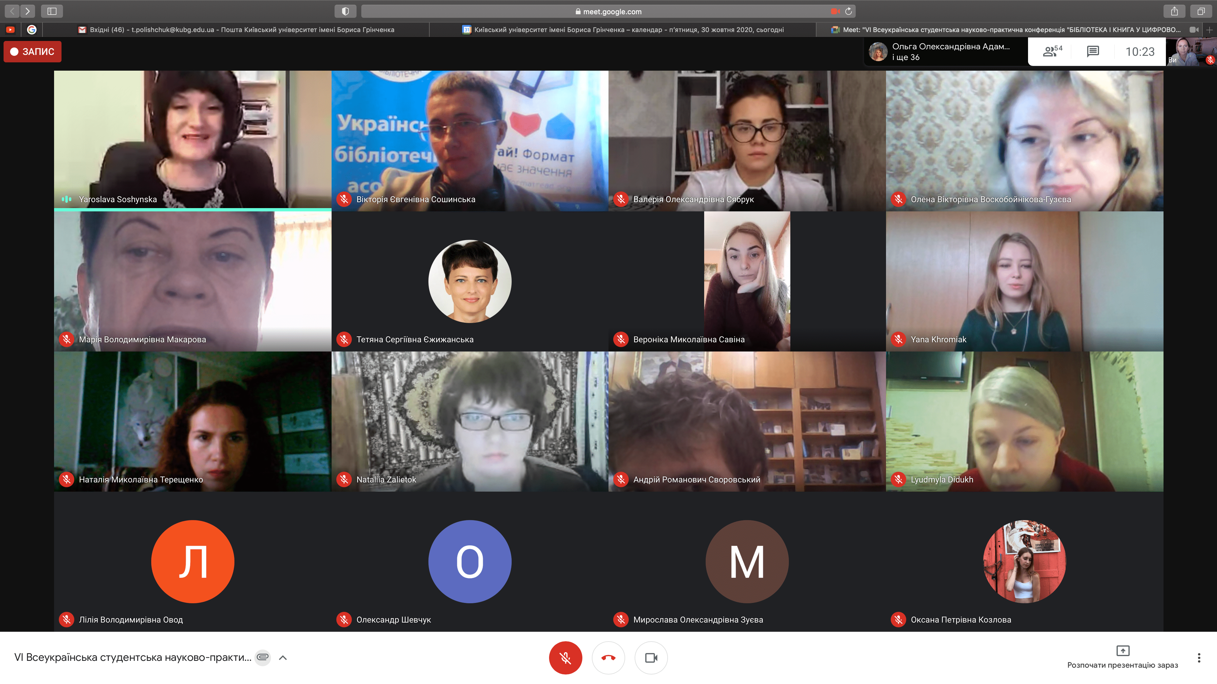 Розклад роботи конференції 30 жовтня 2020 р.
