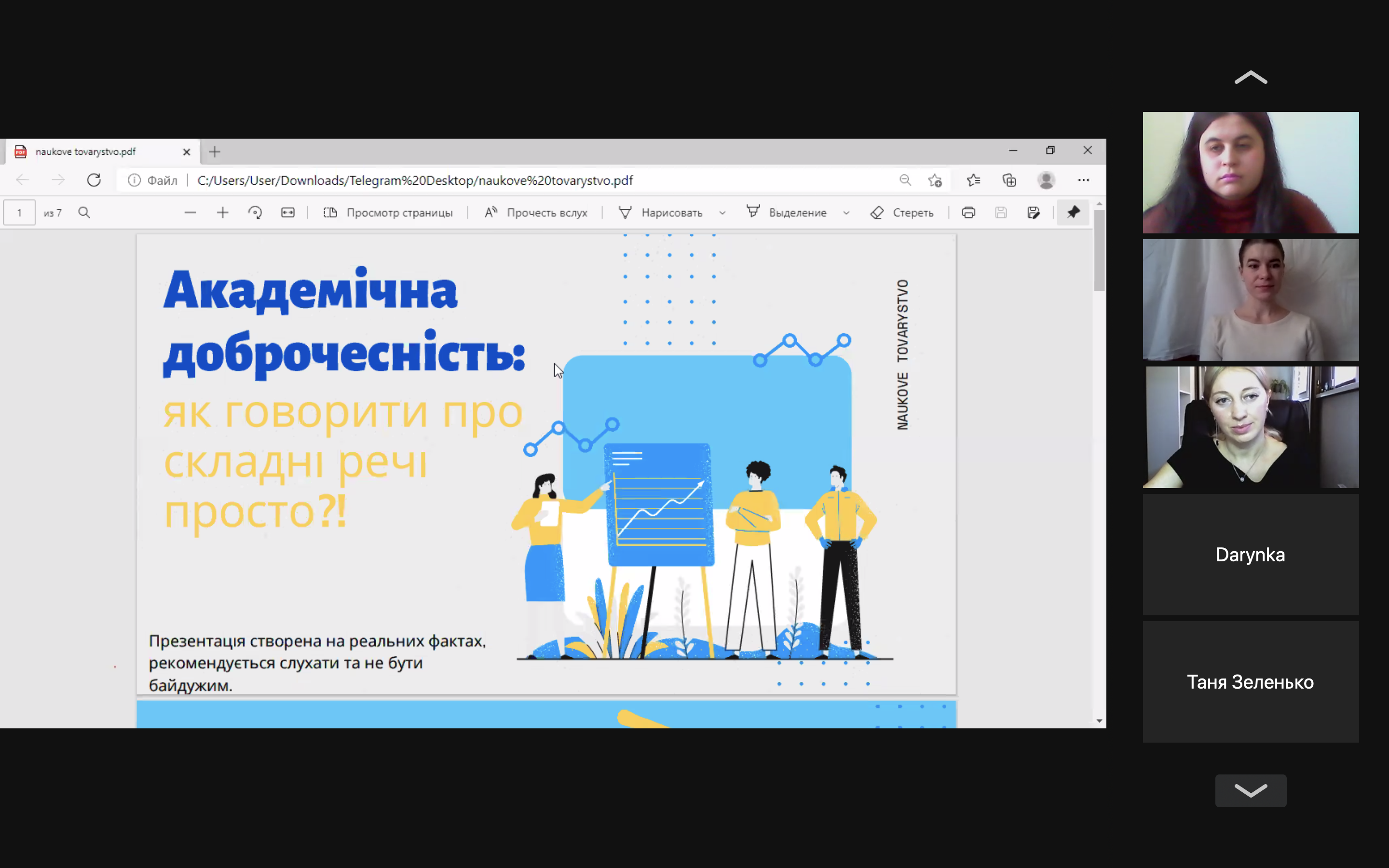 У п'ятницю, 19 лютого, відбувся вебінар «Культура академічної доброчесності: проблеми та виклики для здобувачів освіти», на якому були присутні понад двісті учасників - студенти та викладачі Інституту журналістики. Виступили: Оксана Шахова, координаторка «Школи академічної доброчесності», яка зрозуміло й доступно розповіла про академічну доброчесність у навчанні студентів та роботі викладачів, поділилася власним досвідом та порівняла закордонні прояви академічної доброчесності з українськими реаліями; Дана Сопова, викладачка циклової комісії з педагогічної освіти Фахового коледжу «Універсум», яка за допомогою наукових методик, аргументувала вагомість дотримання академічної доброчесності в Україні, поділилися досвідом академічної доброчесності у Фінляндії.