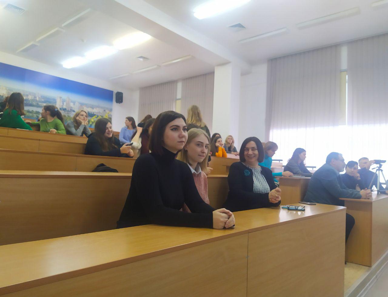 О 10:00 розпочався майстер-клас «Київ – всесвітня книжкова столиця». Студентки вже три роки поспіль презентують свій проєкт та його успіхи. Уся аудиторія заповнена, вільних місць майже немає. Розпочала захід доцент кафедри видавничої справи Олена Осмоловська, одразу після цього відбувався перегляд відео та розгляд презентації. Старшокурсниці із задоволенням розповідали - чому вони вирішили розробити такий проєкт, як саме це відбувалося і різні цікаві деталі.