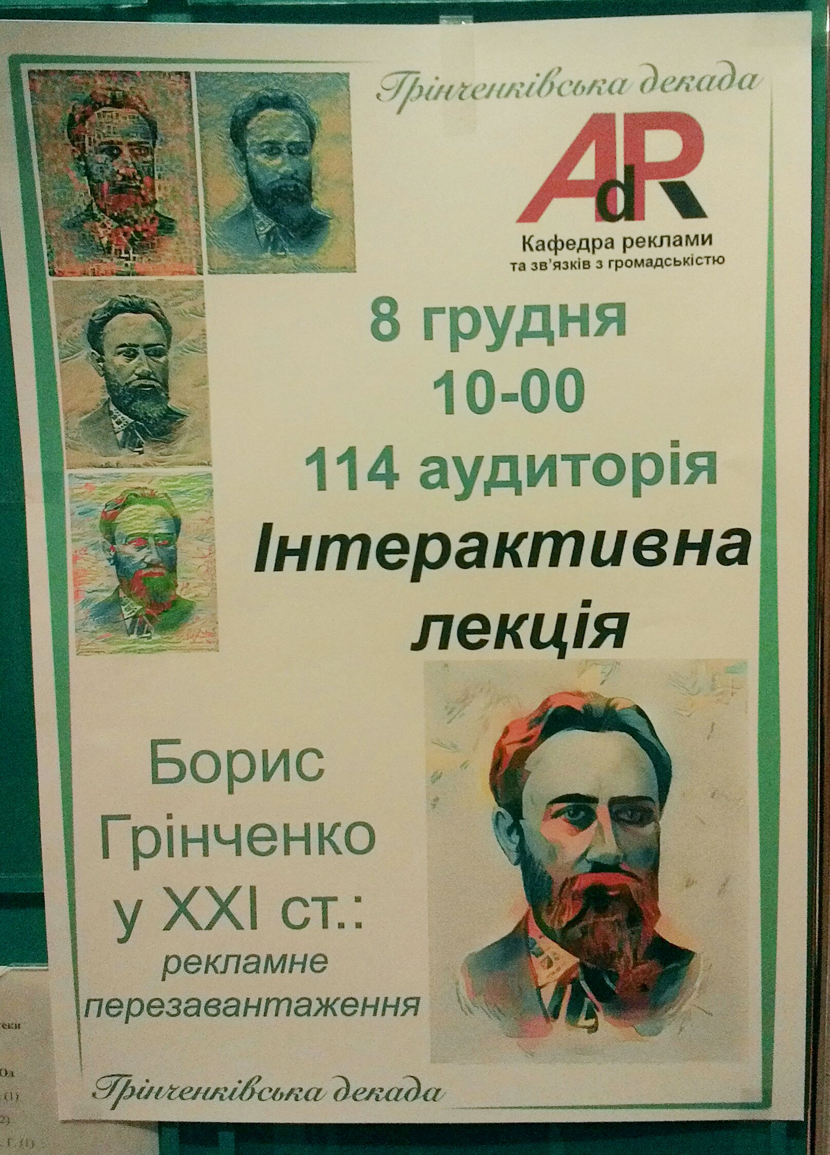 Інтерактив «Борис Грінченко у ХХІ столітті: рекламне перезавантаження», організований студентами кафедри реклами і зв’язків з громадськістю, відбувся 8 грудня в Інституті журналістики.