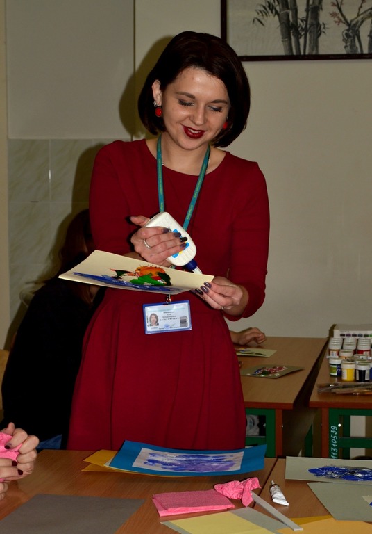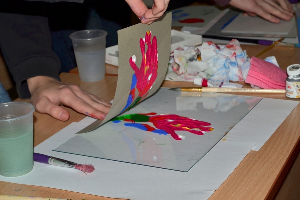 «Монотипія – це тиражна графіка, − пояснила вона, − де використовуються скло та акрилові фарби. Особливістю є те, що якщо ви робите композицію, з неї можна зробити навіть кілька зображень. До того ж, ви ніколи не знаєте, що у вас вийде, це все абстракція».