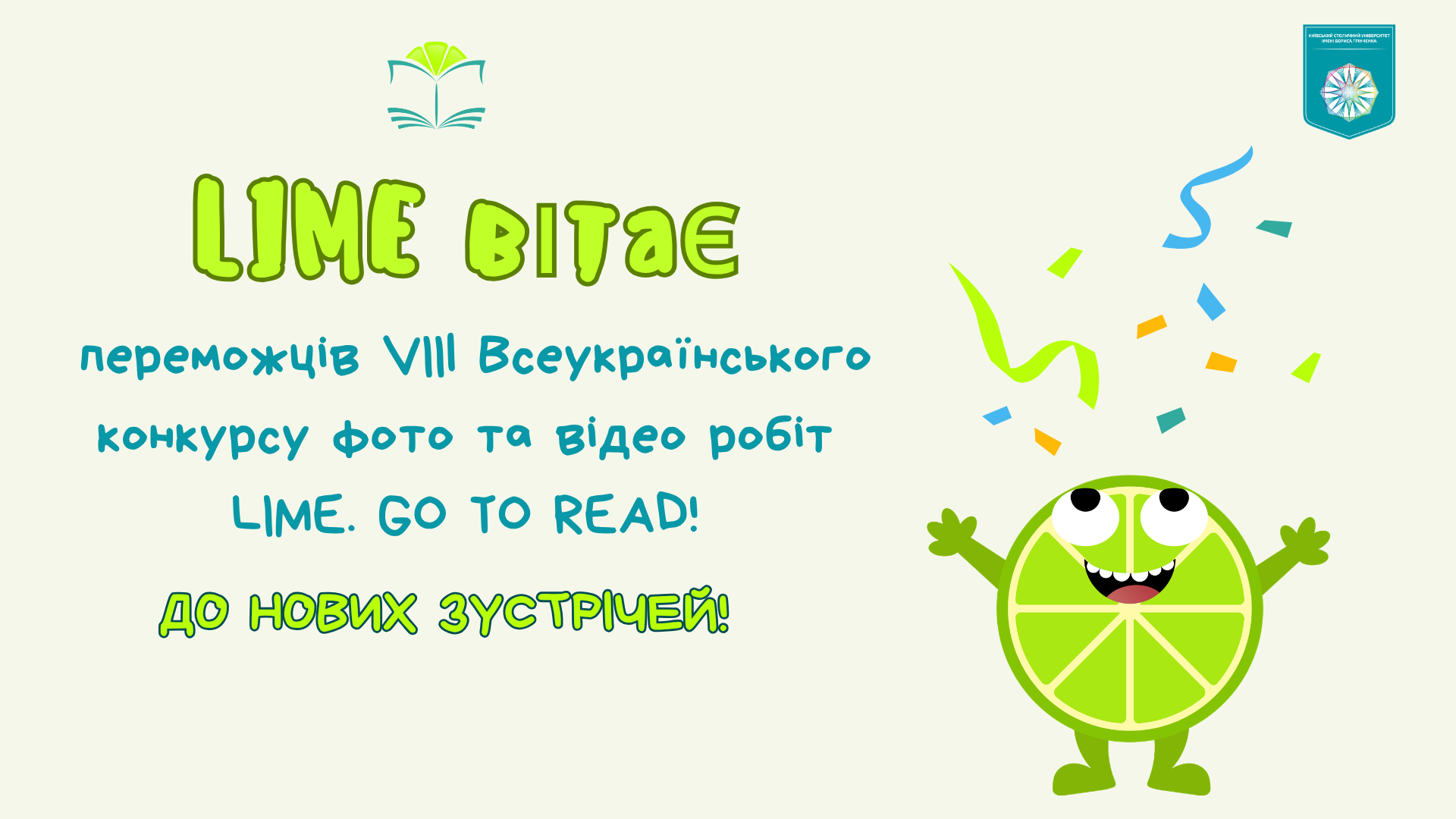 Лайм – там, де книги мають смак! Під таким гаслом відбулася урочиста церемонія оголошення переможців VІІІ Всеукраїнського конкурсу фото- та відеоробіт «LIME. Go to read!» («Library in my eyes. Go to read!»). Цьогоріч захід відбувся в дистанційному форматі, об’єднавши навколо любові до книги сотні талановитих учасників з усіх куточків України.