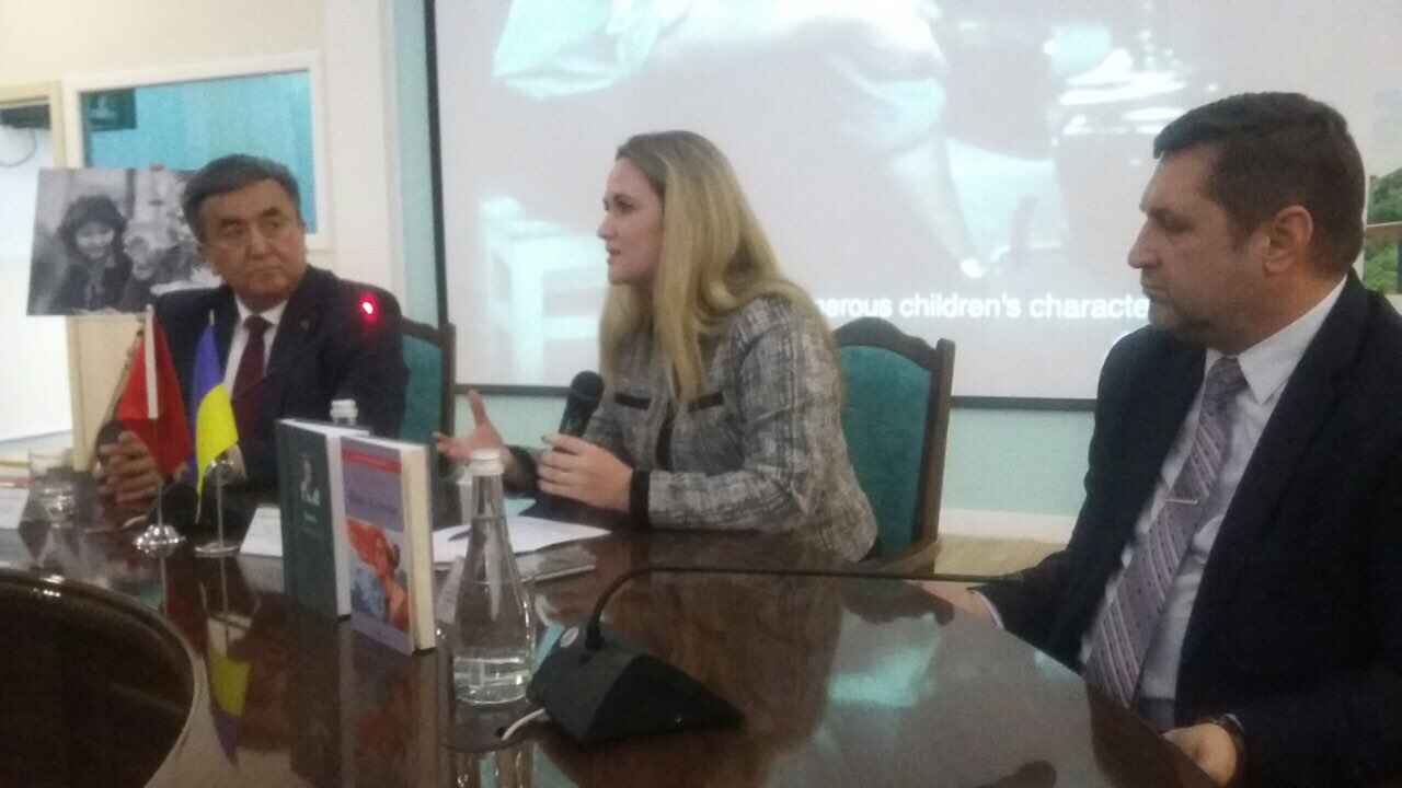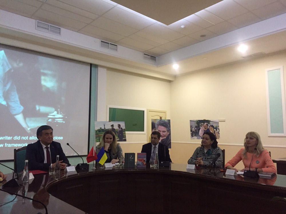 Шановний гість, Надзвичайний і Повноважний Посол Киргизької Республіки в Україні, Ж.Ш.Шаріпов розповів студентстській аудиторії про значення постаті Чингіза Айтматова для світової культури. Перекладач М.С.Васьків і модератор зустрічі доцент О.А.Хамедова змогли зацікавити і студентів, і викладачів творчістю видатного киргизького письменника. Тепер буде нагода прочитати його твори, адже кілька збірок перекладів Посольство Киргизької Республіки подарувало нашій бібліотеці. У заключному слові проректор Н.М.Віннікова висловила сподівання на подальшу співпрацю з Посольством Киргизької Республіки.