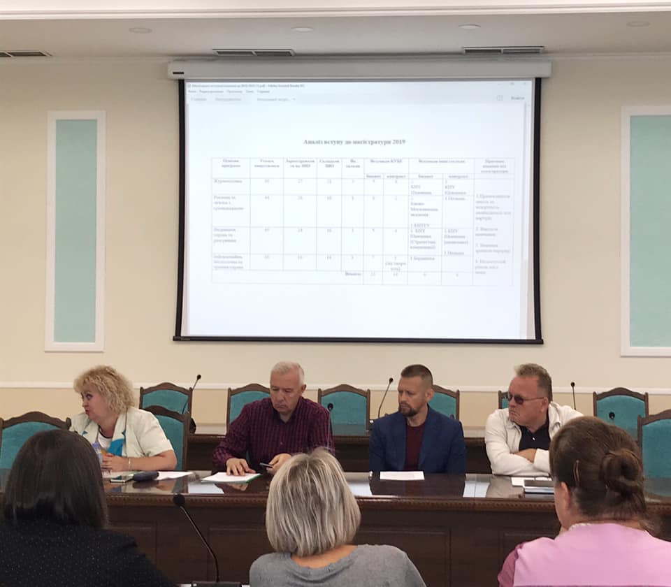 17 вересня 2019 р. відбулося засідання Вченої ради Інституту журналістики. Засідання відбувалось під головуванням Г. В. Горбенко, директора Інституту журналістики, кандидата педагогічних наук, доцента, відповідно до порядку денного. Із запрошених гостей був присутній О. Б. Жильцов, проректор з науково-методичної та навчальної роботи, кандидат педагогічних наук, доцент.
