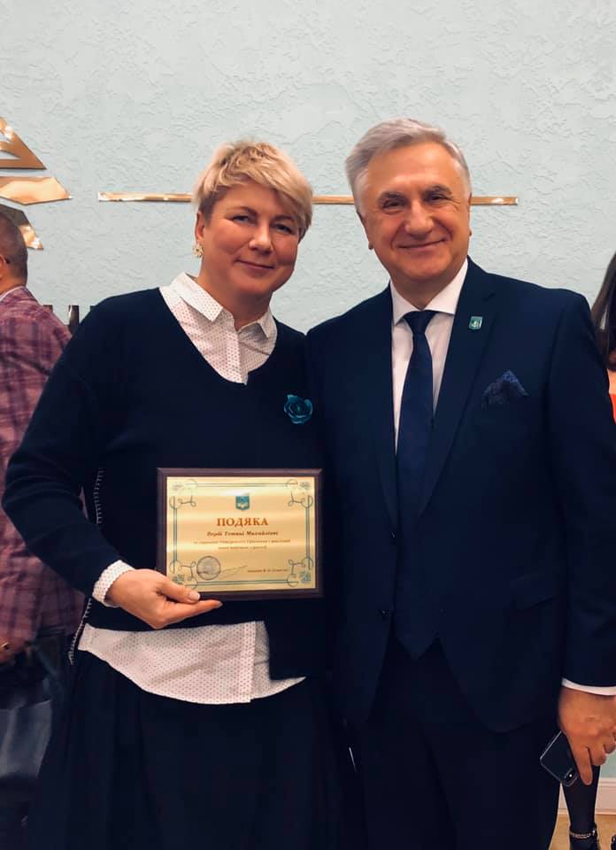 Також вітаємо керівника навчального відділу Левченко Любов Степанівну з нагородженням медаллю Бориса Грінченка за особисий внесок у розвиток Університету і студентку кафедри реклами та зв'язків з громадськістю Маргариту Соколовську з отриманням іменної стипендії Бориса Грінченка.