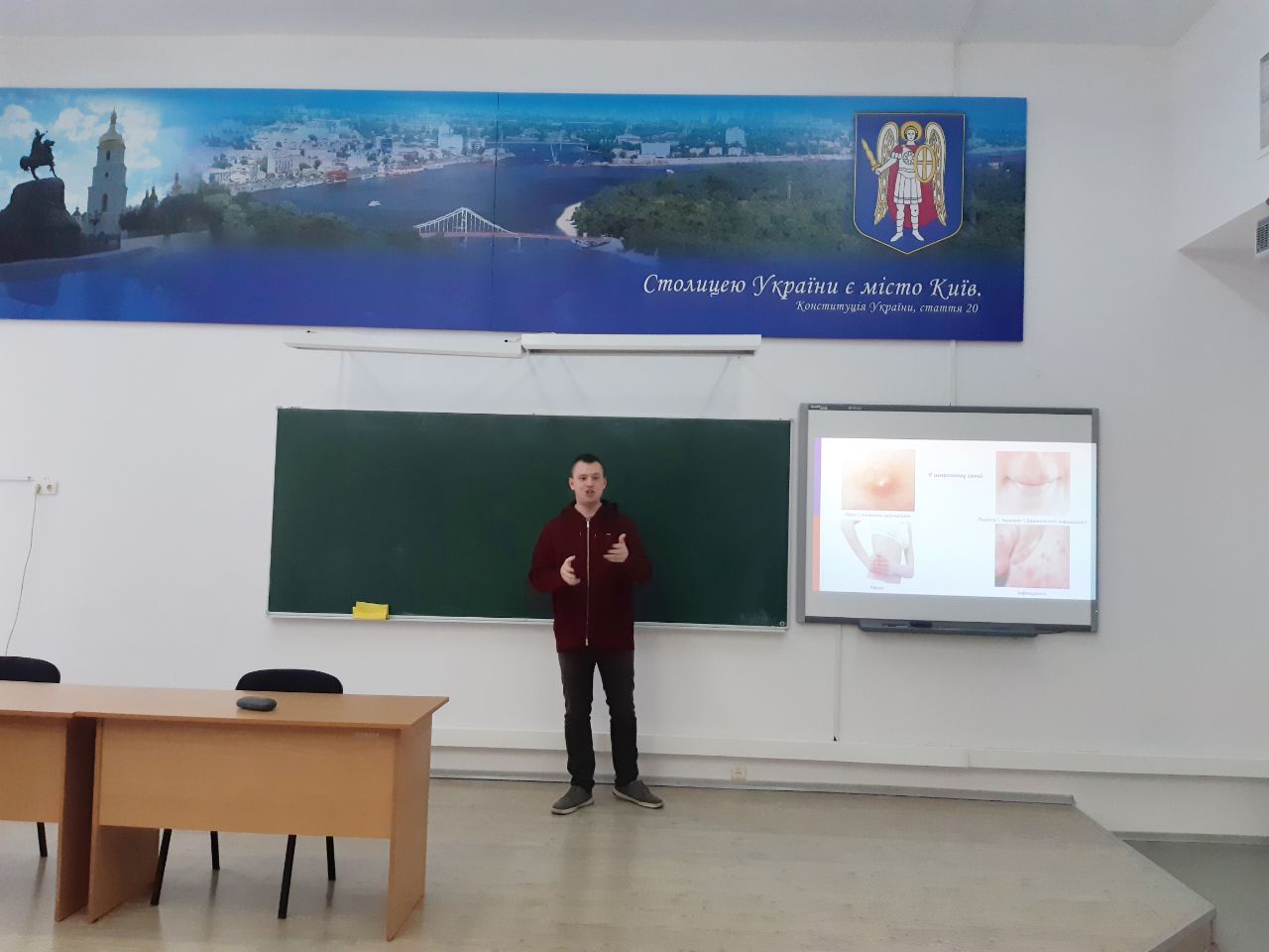 Лекцію провів лікар-інфекціоніст, провідний фахівець з громадського здоров'я КНП "Київський міський центр громадського здоров'я" Євген Олегович Гречуха. Студентам розповіли про властивості імунітету, найпоширеніші інфекційні хвороби та медичні міфи. А також показали, які медичні онлайн-ресурси заслуговують довіри та де можна перевіряти інформацію.