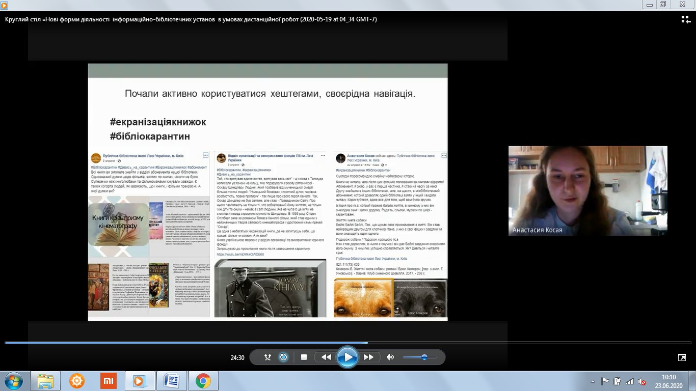 19 травня 2020 року кафедра бібліотекознавства та інформології в межах тижня науки провела онлайн круглий стіл з випускниками, що працюють за фахом.