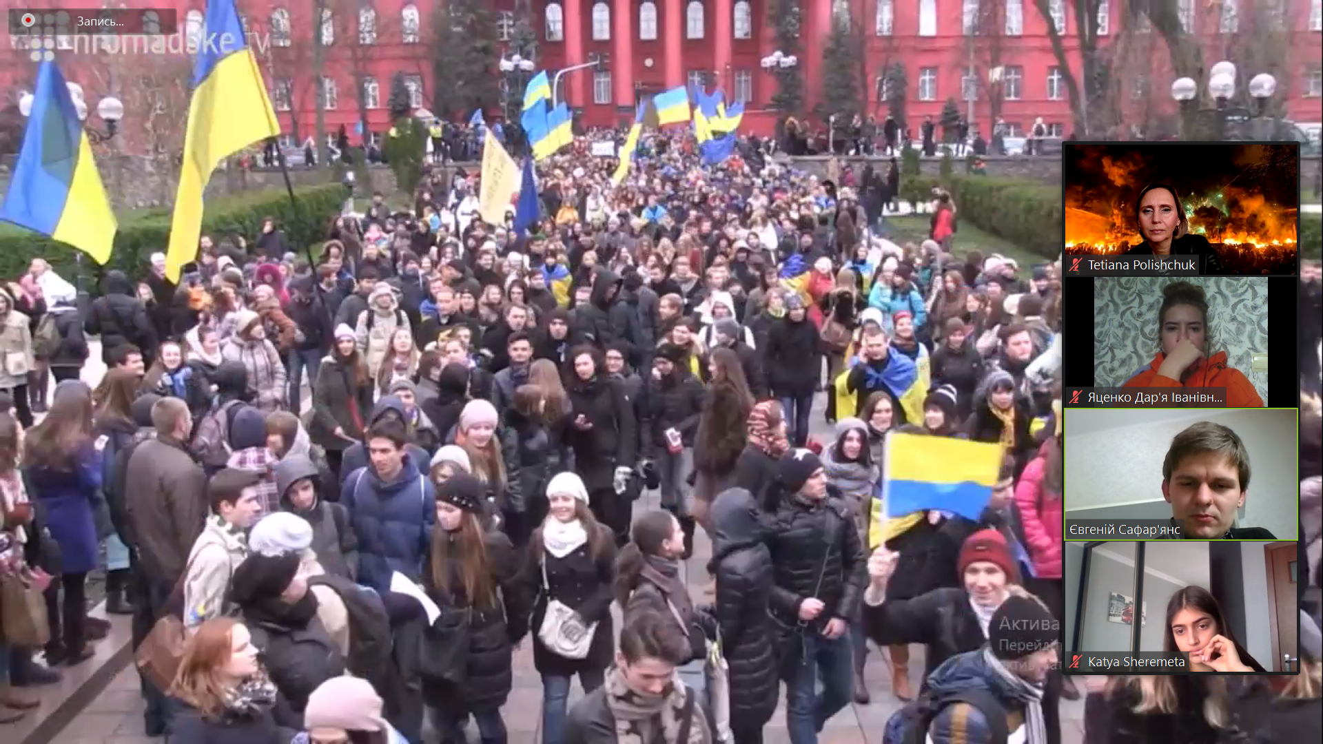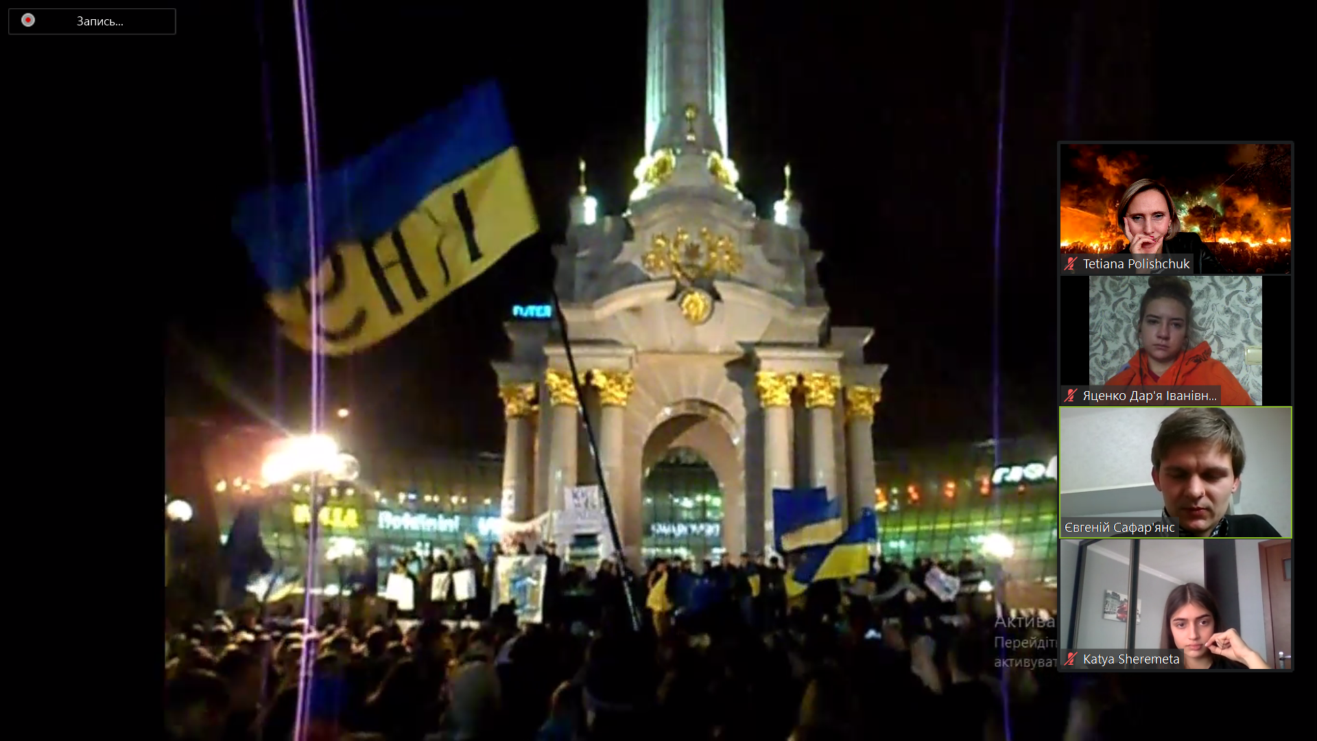 Революція Гідності безумовно залишила глибокий і незабутній слід в нашій історії. Спочатку модератор зустрічі Тетяна Поліщук запитала які наші власні спогади про події 2013-2014 років в країні. І хоча нам було всього 10-12 років, деякі «спалахи» закарбувалися в нашій пам’яті: