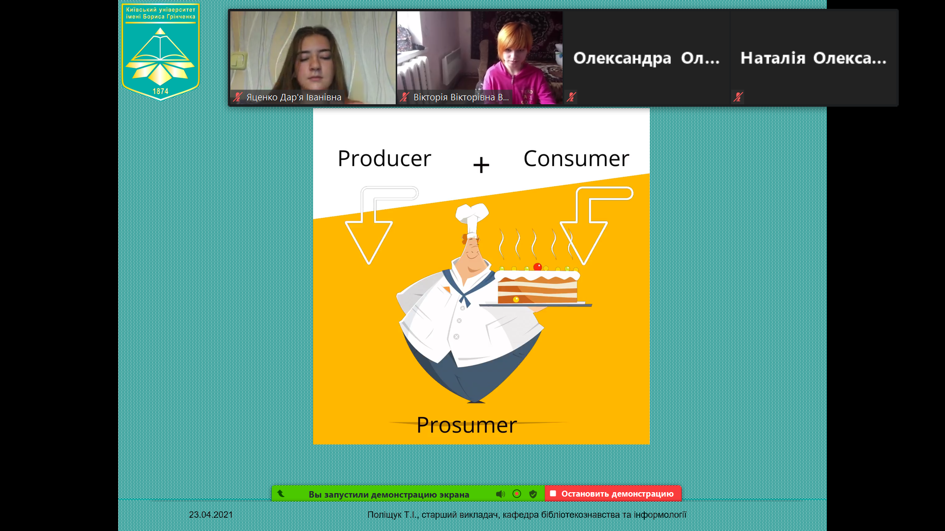 23 квітня 2021 року до студентів освітньої програми “Інформаційна, бібіотечна та архівна справа” завітала фахівчиня відділу обслуговування бібліотеки Національної музичної академії України імені П. І. Чайковського Салтикова Анастасія.