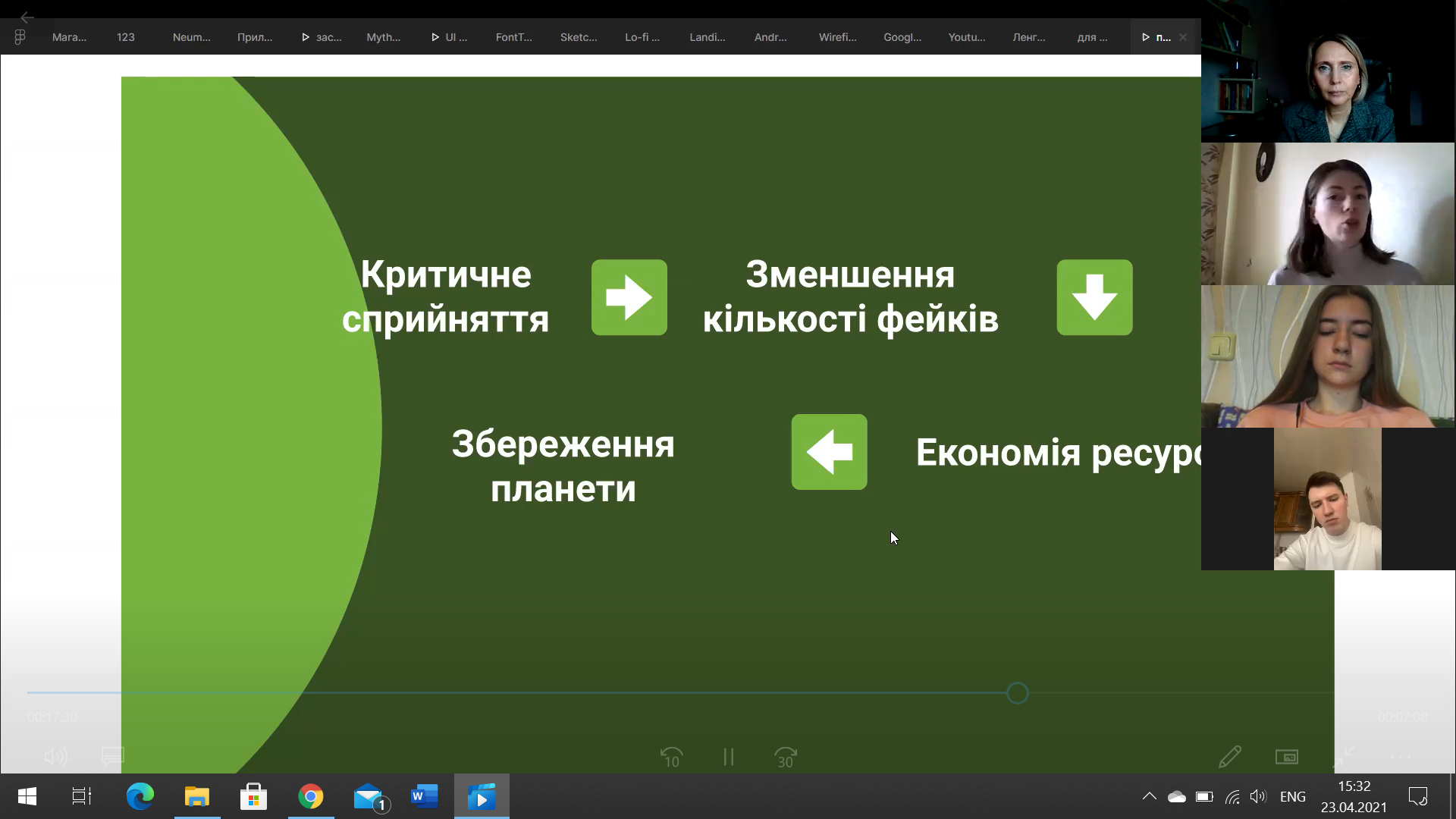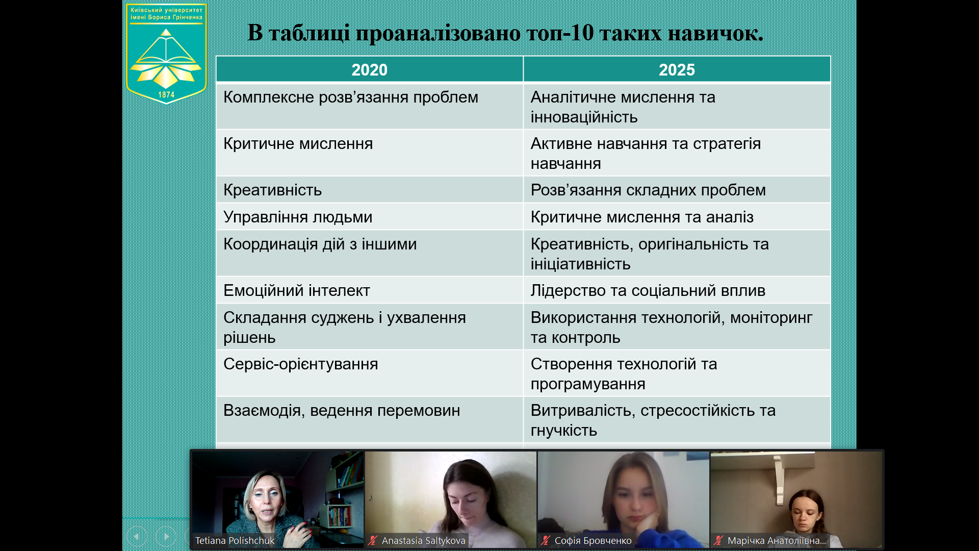 Під час круглого столу дискусія розгорнулася навколо питань взаємодії з медіа, вміння працювати з інформацією, отримувати чи ні додатково медіаосвіту та як піднімати рівень медіакультури студентів. Учасниками зазначено, що в умовах дистанційного навчання важливо знаходити баланс такої взаємодії. Студенти зацікавилися і навичками майбутнього, які було представлено Тетяною Поліщук за даними The Jobs Reset Summit (жовтень 2020 р.). Не менш цікавим виявилося дослідження Анастасії Салтикової за темою «Медіапросьюмеризм та екологія», в якому авторка представила алгоритм підрахунку витрат електроенергії на створення одного фейку.