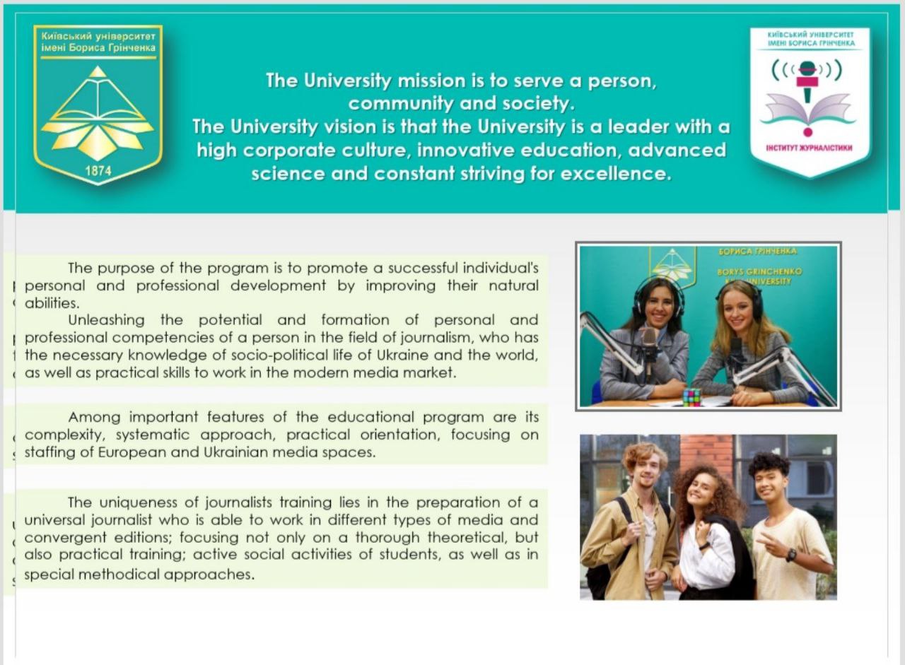 9 грудня 2021 року Інститут журналістики Київського університету імені Бориса Грінченка було приєднано до Європейської асоціації підготовки журналістів (EJTA). Представляли університет викладачі кафедри журналістики та нових медіа Ольга Мітчук та Олександра Гондюл.
