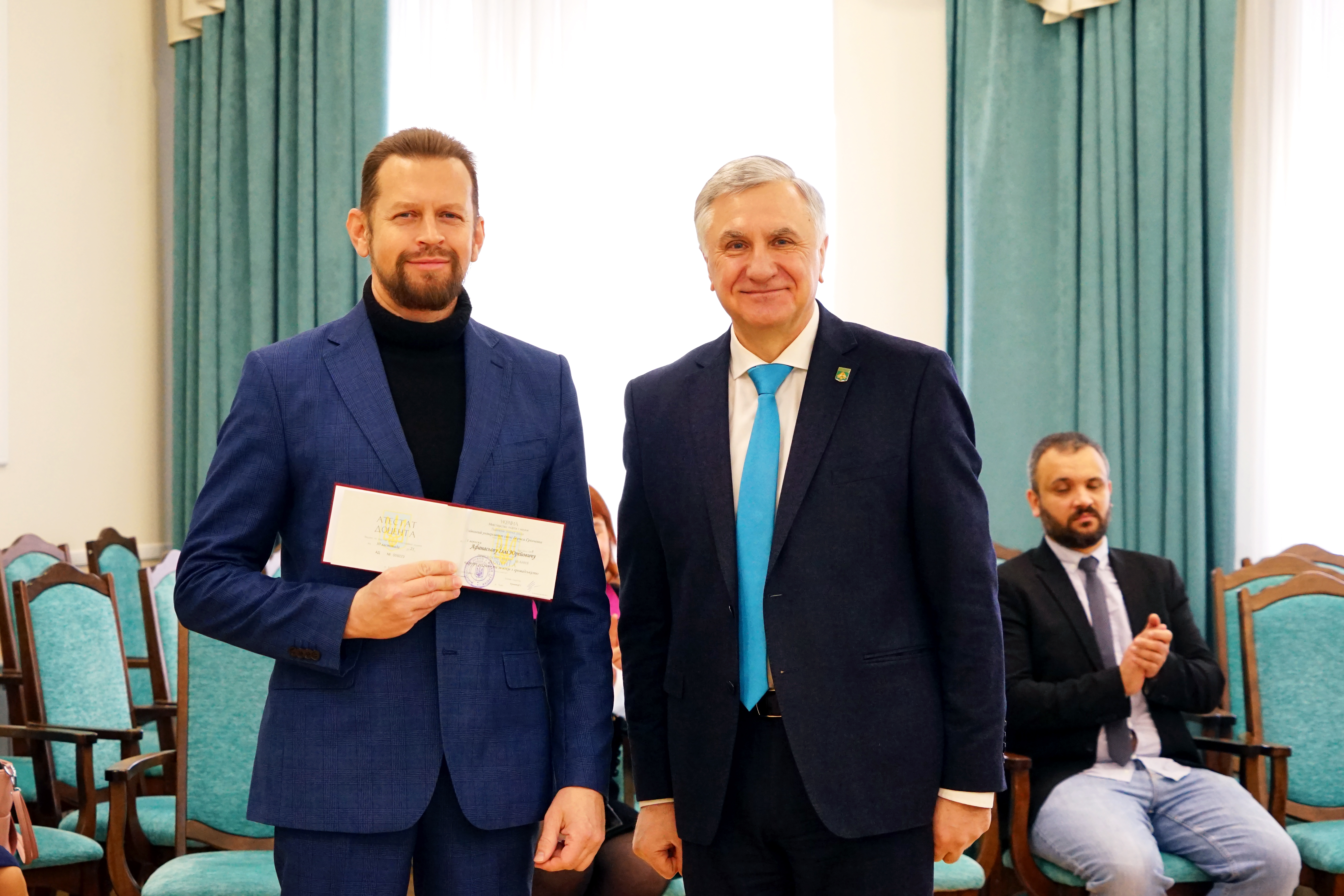 Щиро вітаємо наших колег: доктора історичних наук, професора кафедри видавничої справи Шпака Віктора Івановича з отриманням атестату професора та кандидата історичних наук, доцента кафедри реклами та зв’язків з громадськістю Афанасьєва Іллю Юрійовича з отриманням атестату доцента!