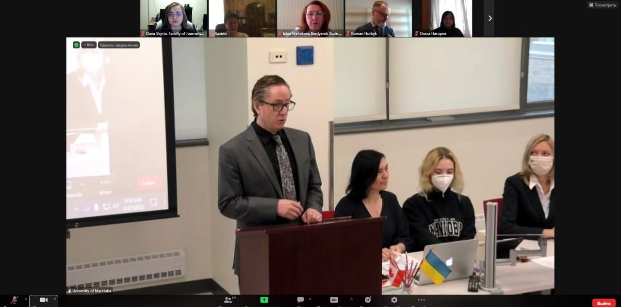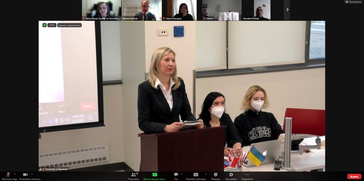 Міжнародна мультидисциплінарна конференція «MAIN CHALLENGES AND ISSUES OF UNIVERSITY EDUCATION IN WAR CONDITIONS: UKRAINE – 2022», організована Факультетом мистецтв Університету Манітоби (Вінніпег, Канада), зібрала більше п‘ятдесяти спікерів з різних куточків України та світу. Одним з основних питань було - Які виклики постали перед вищою освітою України під час війни, і як їх вирішувати? Панельні дискусії охопили медичний, філологічний, журналістський, педагогічний та мистецький напрямки. Серед учасників конференції були присутні викладачі та студенти Факультету журналістики Університету Грінченка: кандидат педагогічних наук, доцент кафедри журналістики та нових медіа Аліна Лісневська, студентка 4 курсу Дар'я Скирта, а співорганізаторкою виступила – кандидат філологічних наук, доцент кафедри журналістики та нових медіа Ольга Хамедова.