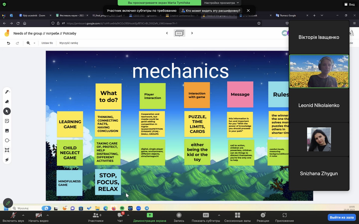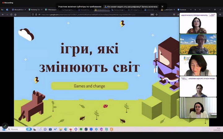 25 травня було проведено 3 воркшопи: «Game Design in the Time of Crisis» (модератор – Марта Тимінська / Marta Tymińska, докт. філософії, доц. кафедри кіно та медіа Гданського університету, Польща); «Креатив, дизайн, комунікація» (модератор – доц. Маргарита Нетреба, доц. кафедри реклами та зв’язків з громадськістю Факультету журналістики КУБГ, канд. наук із соц. комунікацій); «Соціальні комунікації та війна: актуальні тренди» (модератор – Євген Магда, канд. політ. наук, доц. кафедри видавничої справи та редагування Навчально-наукового видавничо-поліграфічного інституту Національного технічного університету України «Київський політехнічний інститут імені Ігоря Сікорського»).