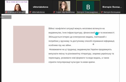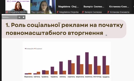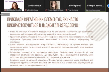 Продовжили роботу конференції 3 круглі столи за участі фахівців-практиків: «Рекламний та PR-креатив у промоції сучасних брендів» (модератори: доц. Маргарита Нетреба, доц. кафедри реклами та зв’язків з громадськістю Факультету журналістики КУБГ, кандидат наук із соціальних комунікацій; проф. Леонід Новохатько, завідувач кафедри реклами та зв’язків з громадськістю Факультету журналістики КУБГ, докт. іст. наук, заслужений діяч науки і техніки України); «Фахові запити сучасної видавничої галузі у період воєнного стану» (модератор – Олена Осмоловська, доц. кафедри медіапродюсування та видавничої справи Факультету журналістики КУБГ, канд. іст. наук); «Журналістика воєнного стану: креатив та суспільна відповідальність» (модератори: Ганна Безулік, доц. кафедри журналістики та нових медіа Факультету журналістики КУБГ, заслужений журналіст України; доц. Яна Фруктова, доц. кафедри журналістики та нових медіа Факультету журналістики КУБГ, канд. пед. наук).