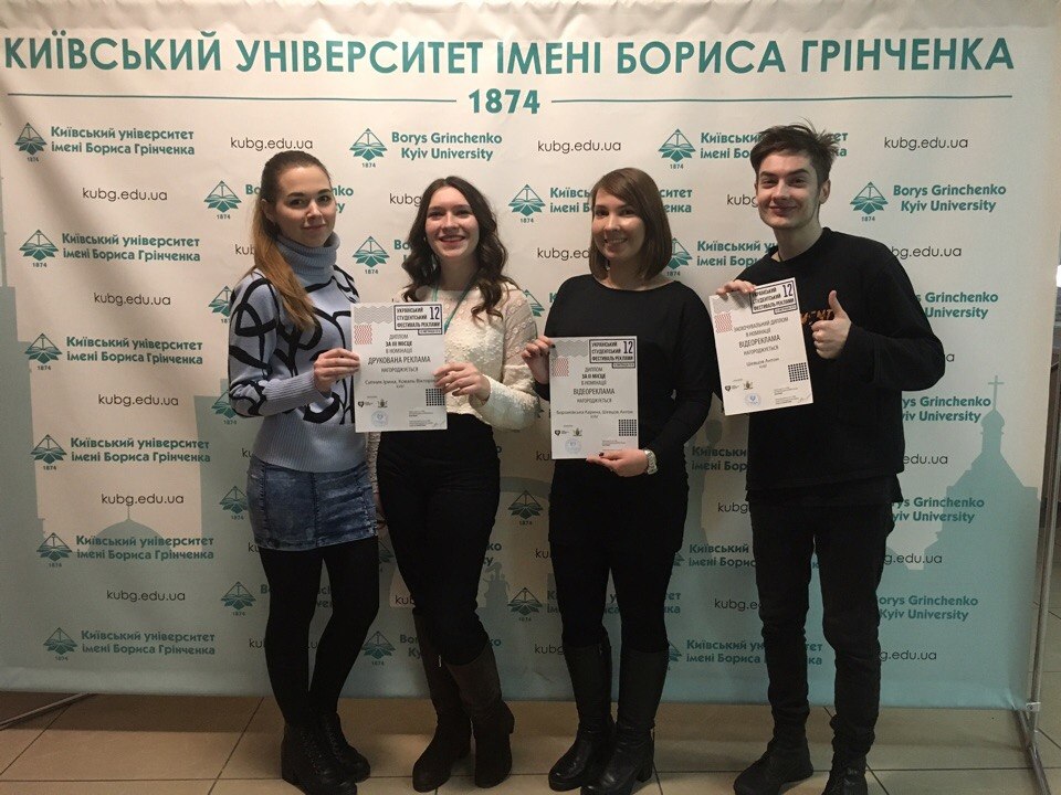 Студенти 3 курсу спеціальності «Реклама та зв’язки з громадськістю» Інституту журналістики Університету Грінченка здобули перемоги на 12 Українському студентському фестивалі реклами, який відбувся 18 листопада 2016 р. у м. Києві.