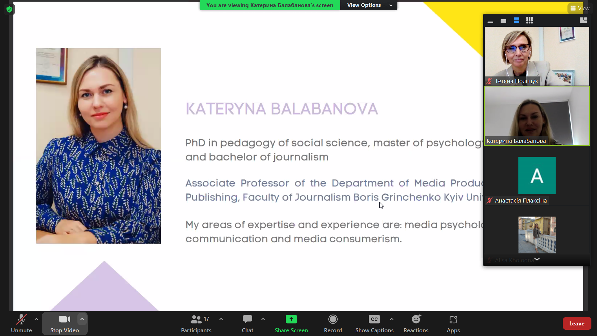 «Курс стосується цікавої та актуальної теми. Подібні курси дають можливість починаючим працівникам у сфері публічних комунікації отримати корисні знання, дізнатися про нові методики, програми, тенденції, які можна використовувати для підвищення ефективності роботи комунікаційника й покращення бренду, іміджу організації.
