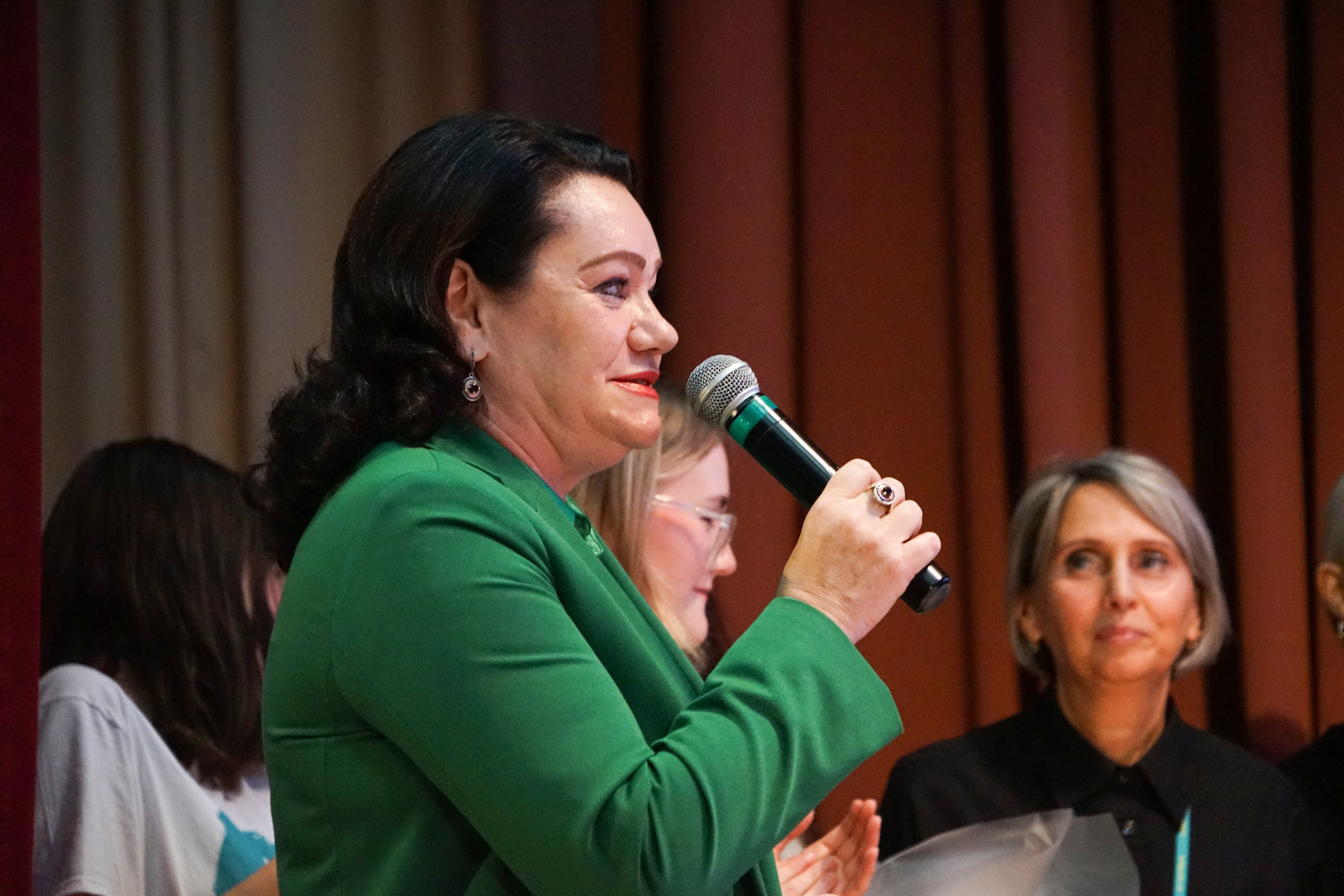 Декан Факультету журналістики - Галина Василівна Горбенко із задоволенням доєдналася до фестивалю першокурнсиків “ОСЬ МИ ЯКІ”, подякувала кожній команді за цікавий та насичений вечір, за витончений гумор, за альтернативний погляд на професію, який подарували глядачам зі сцени студенти. А на завершення справжнього шоу кожна освітня програма отримала солодкі подарунки.
