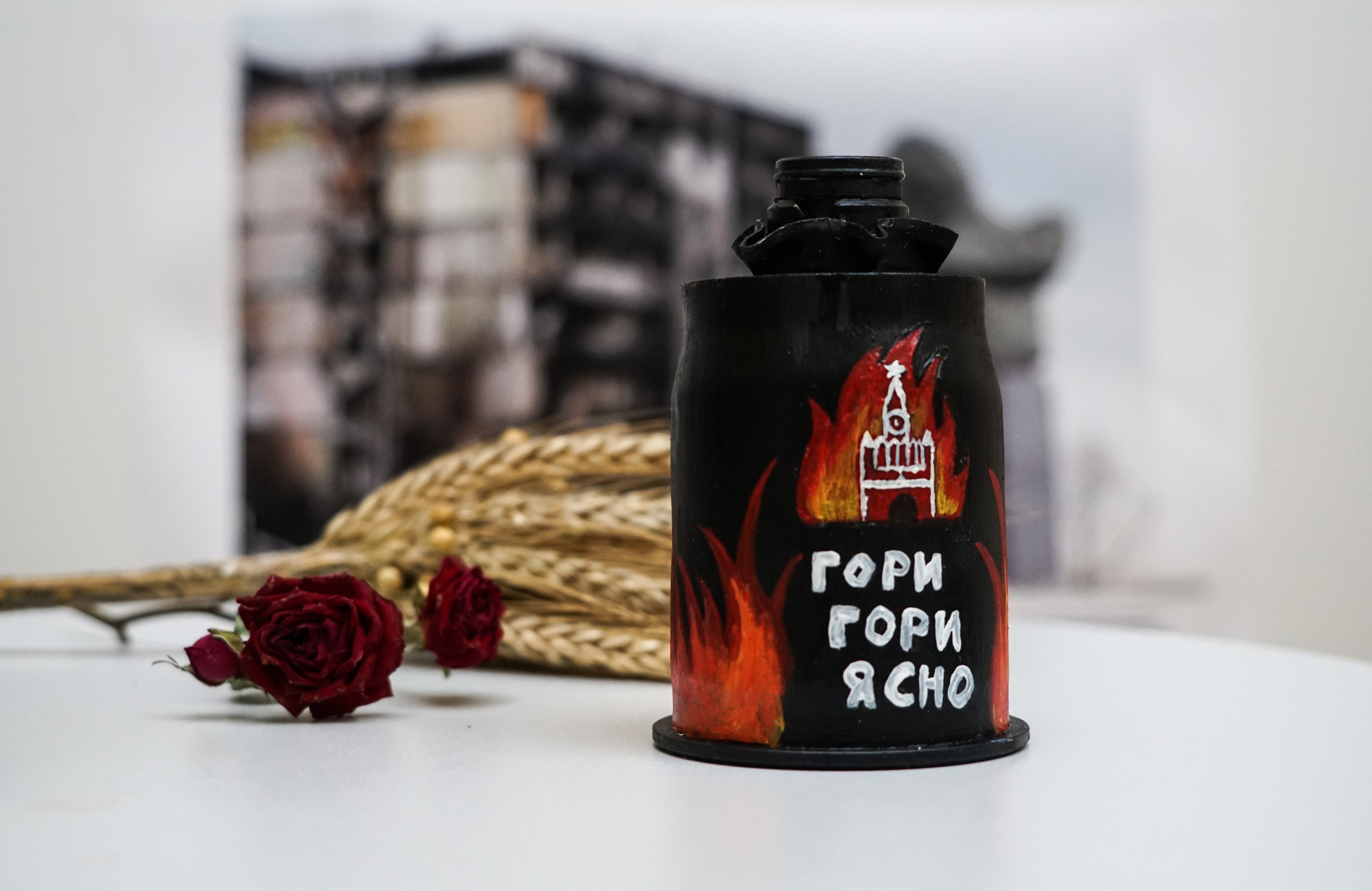 Експозиція військової атрибутики, власноруч розписаної студентами під час спільного майстер-класу, демонструє не лише талант, але й вміння перетворювати страшну смертоносну зброю в предмети краси. Таким чином грінченківські студенти не лише намагаються показати власну позицію, але й реалізувати свою безпосередню мету - допомогти Збройним силам України скоріше здолати ворога і мати можливість знову повернутися до своїх Місць щасливих людей. Усі атрибути, розписані студентами, будуть передані підрозділам, у яких воюють їх викладачі та волонтерам задля подальшої допомоги ЗСУ.