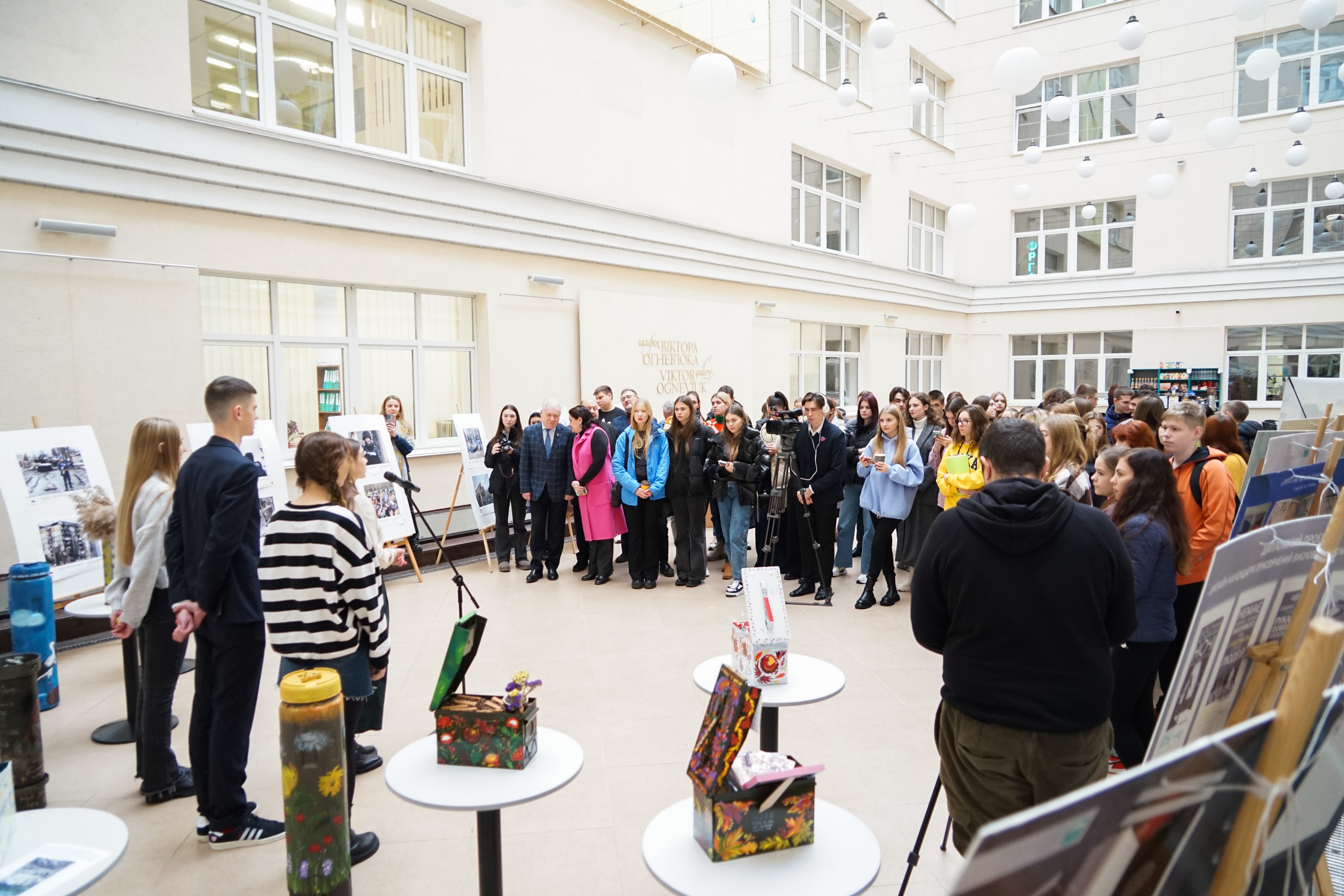 Відкривали виставку студенти ФПМЖ Тетяна Хвостова, Альона Фалько, Павло Горбатюк та студентка ФЖ Раїса-Уляна Гуцол. Автори звернули увагу глядачів на важливість пам’ятати щасливі моменти та не забувати про тих, кому нині зобов’язані життям. Усім відвідувачам було запропоновано написати лист на фронт нашим воїнам ЗСУ.