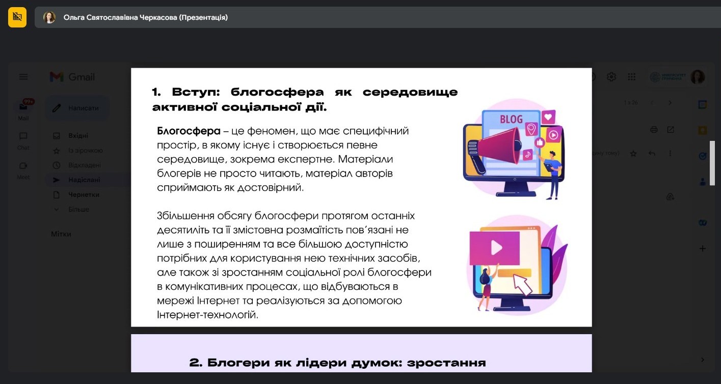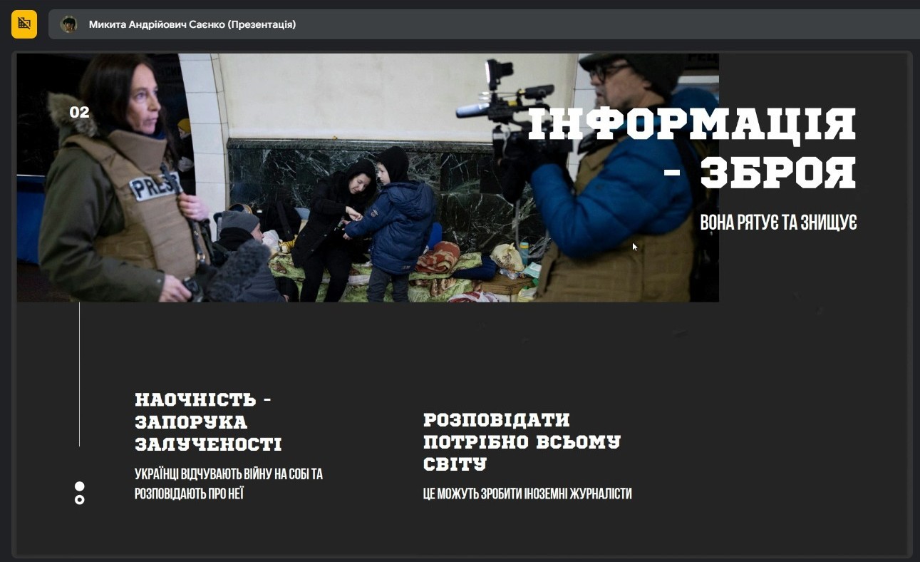 Виступи доповідачів охоплювали такі дослідницькі напрями, як міжнародні проєкти збереження та розвитку української культури в різних країнах світу, інструменти інформаційної війни, загрози використання штучного інтелекту з метою дезінформації, роль блогерів та журналістів під час війни, інтерактивні інструменти висвітлення сучасних криз, вплив війни на зміни у світових тенденціях культурних індустрій, важливість взаємодії та залучення іноземців до висвітлення перебігу війни проти України, трансформації бізнес-моделі цифрової періодики під час війни, та інші дослідження та проєкти у форматі подкастів, тікток-каналів, Ютуб-каналів тощо про необхідність висвітлення війни на міжнародну аудиторію.