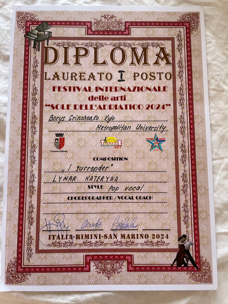 31 липня 2024 року в Сан-Марино відбувся пісенний конкурс в якому, зокрема, брали участь представники з різних країн.