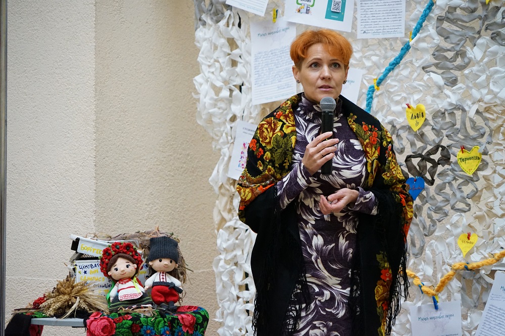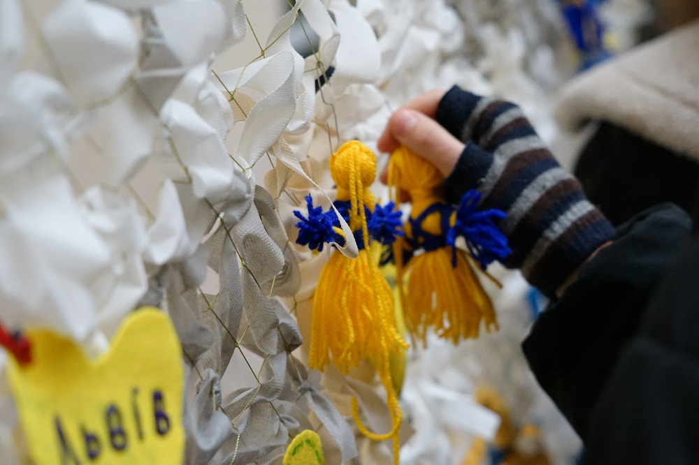 Цьогорічний проєкт ми присвячуємо захисту тих, хто оберігає нас і бореться за кожен метр рідної української землі – нашим Героям. Мрії про Перемогу і мирну Україну студенти демонструють через експозицію «Місця щасливих людей: захист для Героїв!» – велику захисну сітку, яку сплели під наставництвом, методиста Студентського офісу №1, представниці Благодійного фонду «Волонтери ЛАД» Юлії Поліщук.