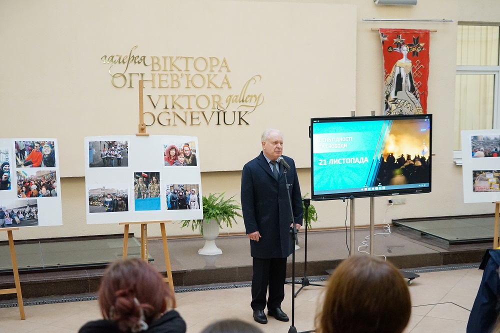 Гостям заходу було запропоновано до перегляду фільм "Дух Майдану" знятий студентами спільно з Астудією у далекому 2014-му. Це світлини зроблені співробітниками та студентами у період з кінця листопада 2013 до середини квітня 2014 року. Упорядником виставки став Роман Ратушний, старший викладач кафедри журналістики та нових медіа, член Міжнародної федерації фотомистецтва (FIAP) та Національної спілки фотохужодників України.