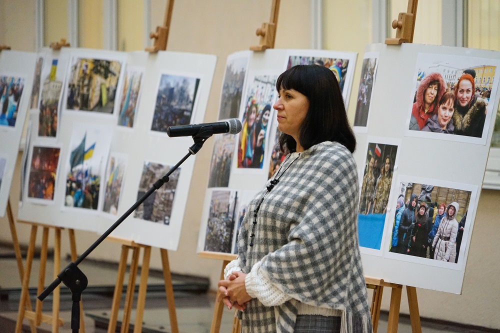 Серед світлин є й роботи зроблені Тетяною Поліщук, заступником декана Факультету журналістики, яка була учасником Автомайдану.