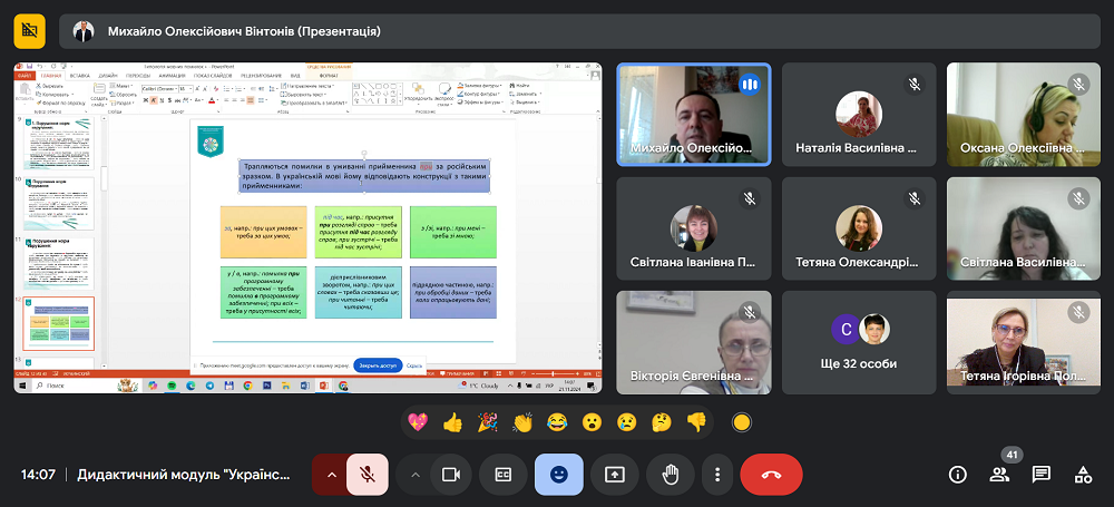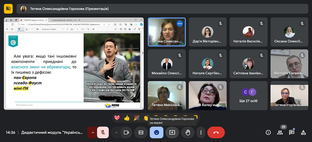 Продовжила тренінг Тетяна Горохова, кандидат філологічних наук, доцент кафедри української мови. Тетяна Олександрівна не лише наводила прикдлади змін, а й пропонувала одразу на практиці застосовувати ті з них, що стосуються тематики та специфіки кожного з присутніх.