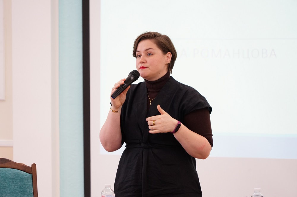 Учасники обговорювали тему «Свобода під обстрілами: права людини під час війни». Пані Саша розповіла про роботу Центру громадянських свобод, трансформацію правозахисних практик, важливість знання своїх прав, а також про відповідальність кожного громадянина в умовах війни.