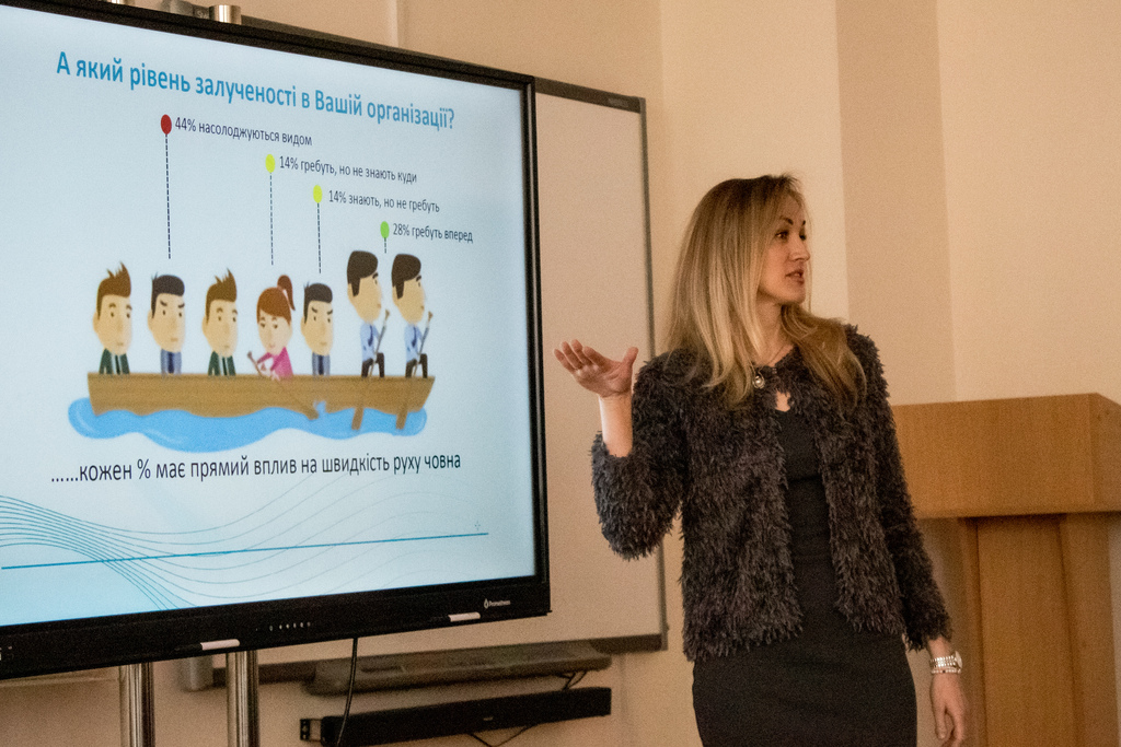 Майстер-клас «Мотивація персоналу та управління конфліктами» від Тетяни Шульгіної, кандидата економічних наук, доцента кафедри управління Університету Грінченка, дослідниці у сфері економіки та менеджменту, волонтера організації “Добро тут” та членкині громадської організації “Материнська любов”. Учасники активно обговорили неминучість конфліктів в колективах та наголосили на важливому умінні їх вирішувати, ставили запитання щодо власних життєвих прикладів та дискутували над рішенями.