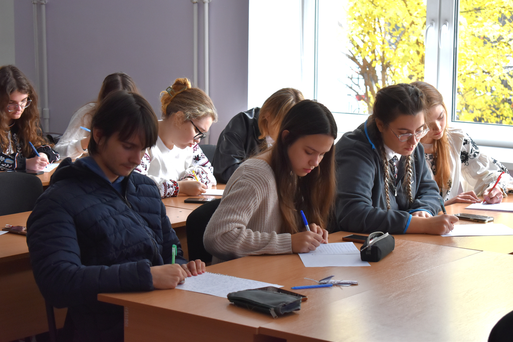 Родзинкою зустрічі стало спільне написання 26 Всеукраїнського радіодиктанту, який читала Народна артистка України Наталя Сумська. Представники ректорату, декани та студенти спільно писали диктант, написаний письменницею Євгенією Кузнєцовою з промовистою назвою -"Треба жити!". Значна частина студентів та викладачів на чолі з деканом Факультету журналістики - Надією Фіголь, долучилася до написання диктанту в аудиторіях.