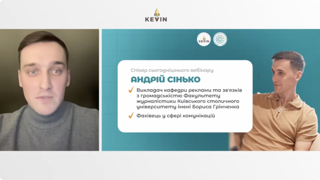 27 січня 2025 року викладач кафедри реклами та звʼязків з громадськістю Андрій Сінько взяв участь як запрошений спікер в онлайн-заході для учнів 9–11 класів та їхніх батьків, організованому Школою KEVIN – освітнім проєктом, що спеціалізується на підготовці до НМТ.
