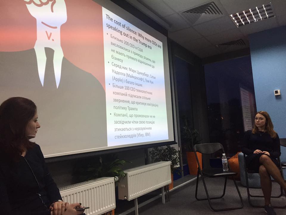 про новий тренд "CEO activism" і про причини, що змушують керівників займати публічно чітку позицію з "гарячих" і навіть контроверсійних питань. В США навіть нейтрайлі інституції, такі, як університети, також вважають за потрібне діяти, оскільки мають студентів в зоні ризику. Наприклад Унівеситут Фордам видав звернення до всіх студентів після перемоги Трампа. Теза для дискусії: настали такі часи, коли залишатися нейтральним щодо багатьох тем вже неможливо...(Курс "Корпоративні комунікації" , тема:"Корпоративна соціальна відповідальність").