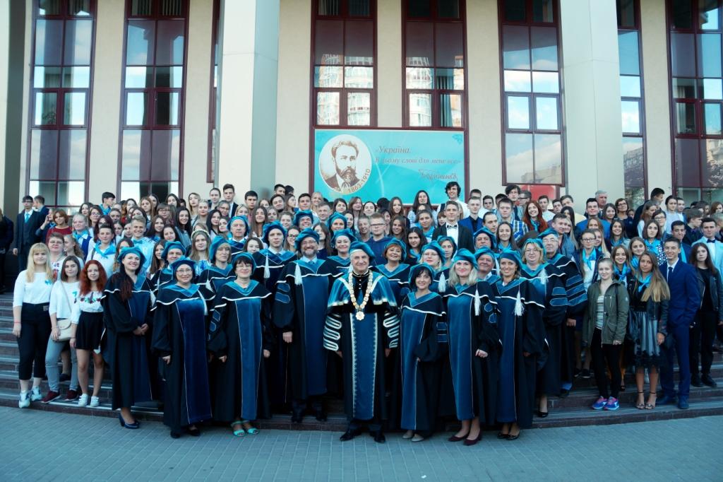 У концертній залі навчального корпусу по вул. Тимошенка, 13-Б зібралися першокурсники, викладачі, Вчена рада Університету на чолі з ректором Віктором Олександровичем Огнев’юком, почесні гості. Під звуки Гімну України церемонію свята оголосили відкритою.