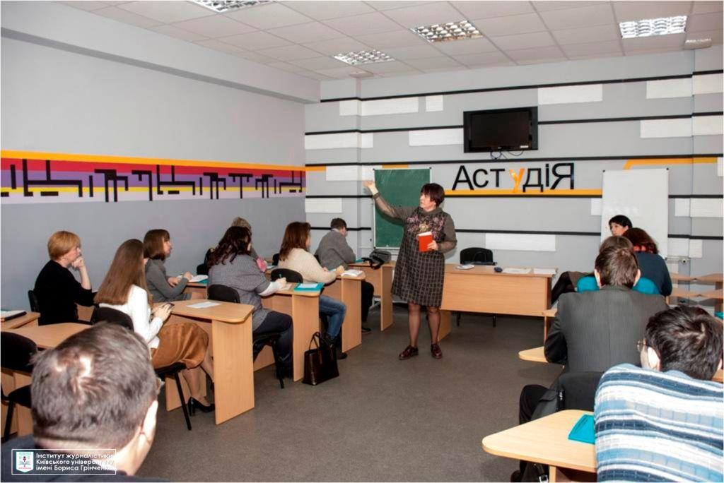 На панельній дискусії виступила Тетяна Гузенко, експерт з комунікацій The Communication Reform Group, кандидат наук із соціальних комунікацій, доцент, начальник управління інформаційної політики та комунікацій Департаменту суспільних комунікацій Київської міської державної адміністрації, яка акцентувала увагу на тому, що освітня установа має величезний вплив на формування бренду міста та країни і навела приклад проекту «Київ - Всесвітня книжкова столиця», який ініціювали студенти Інституту журналістики Університету Грінченка.