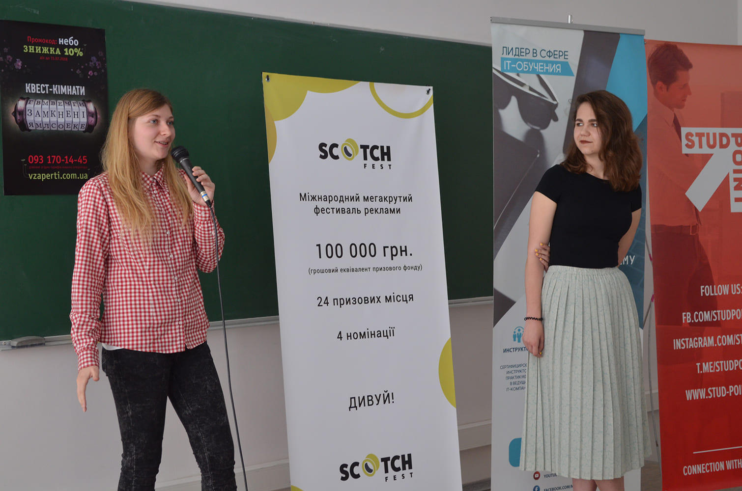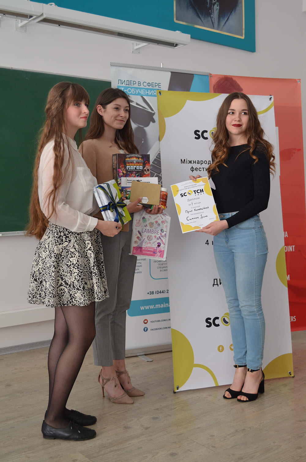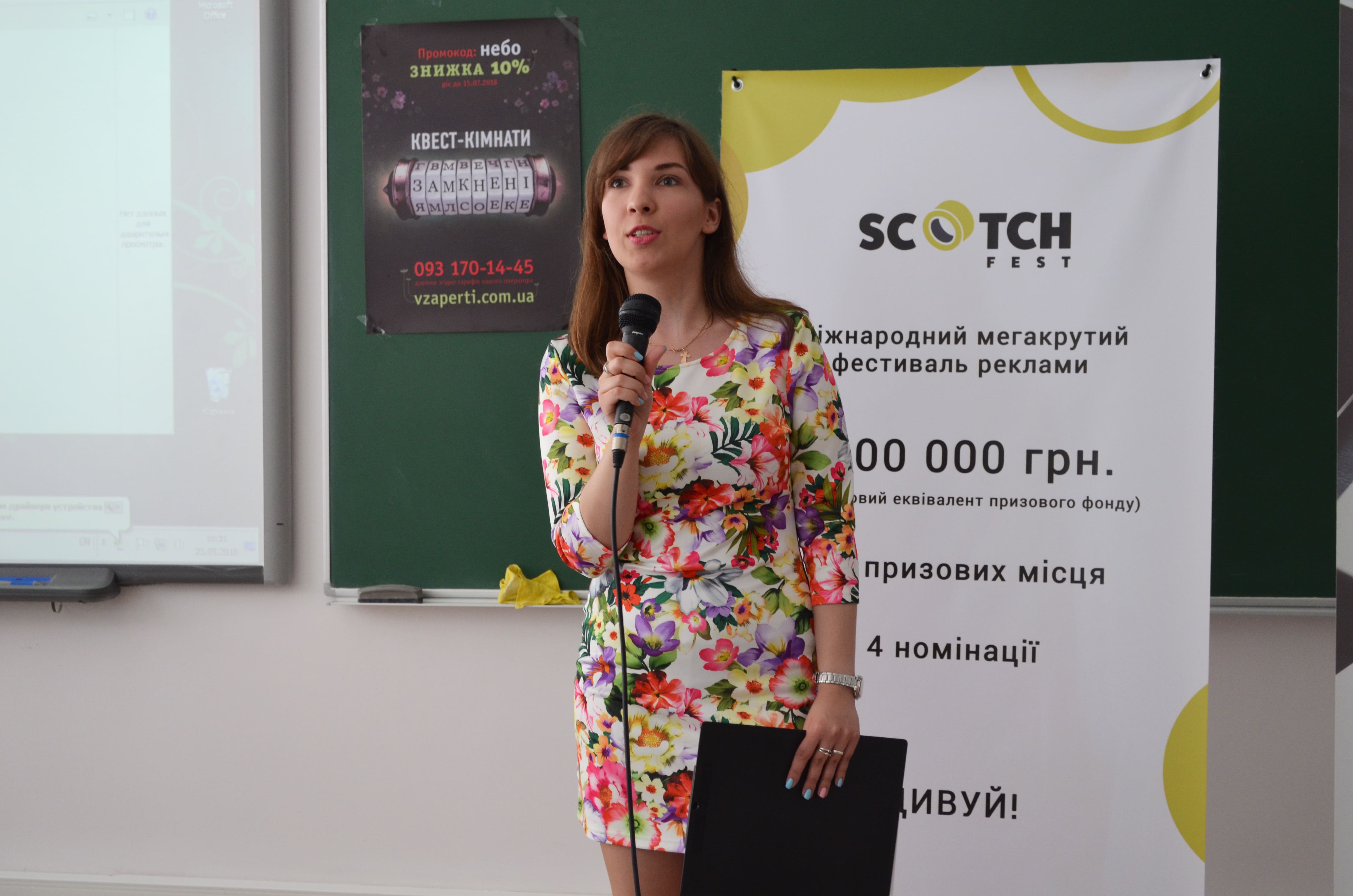 У середу, 23 травня 2018 року в Інституті журналістики відбувся Міжнародний фестиваль реклами “Scotch Fest”. Студенти кафедри реклами та зв’язків з громадськістю Євгенія Травіна, Карина Борзаківська та Вікторія Коваль на чолі з керівником фестивалю – старшим викладачем кафедри Віктором Шияном вчетверте організували святковий настрій для учасників та гостей фестивалю.