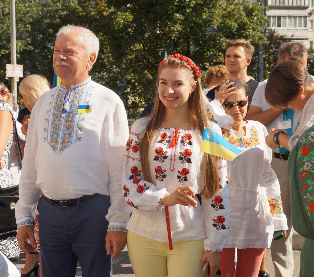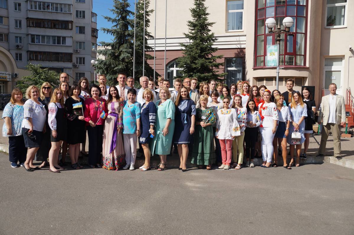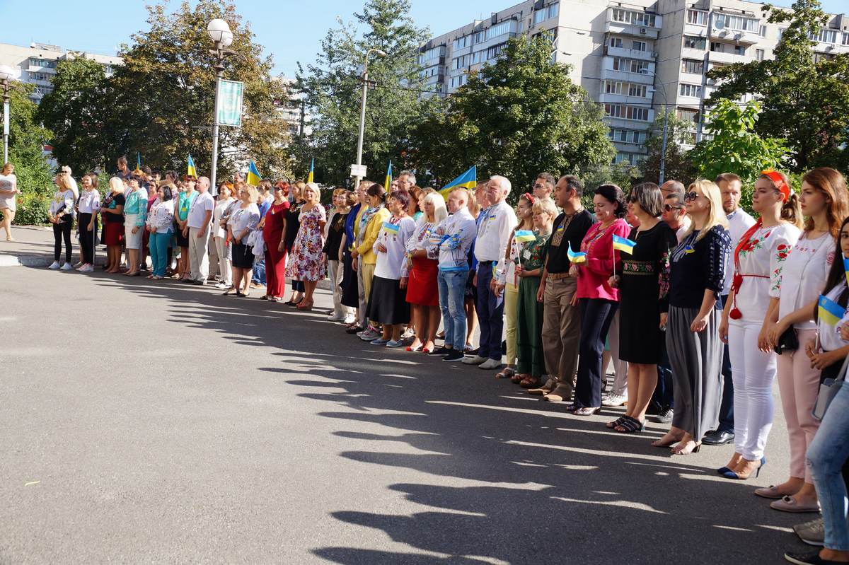 О 10 годині грінченківці у вишиванках та зі святковим настроєм зібрались перед навчальним корпусом №1. Перед початком заходу присутні отримали символ свята – прапорець із колоссям пшениці.