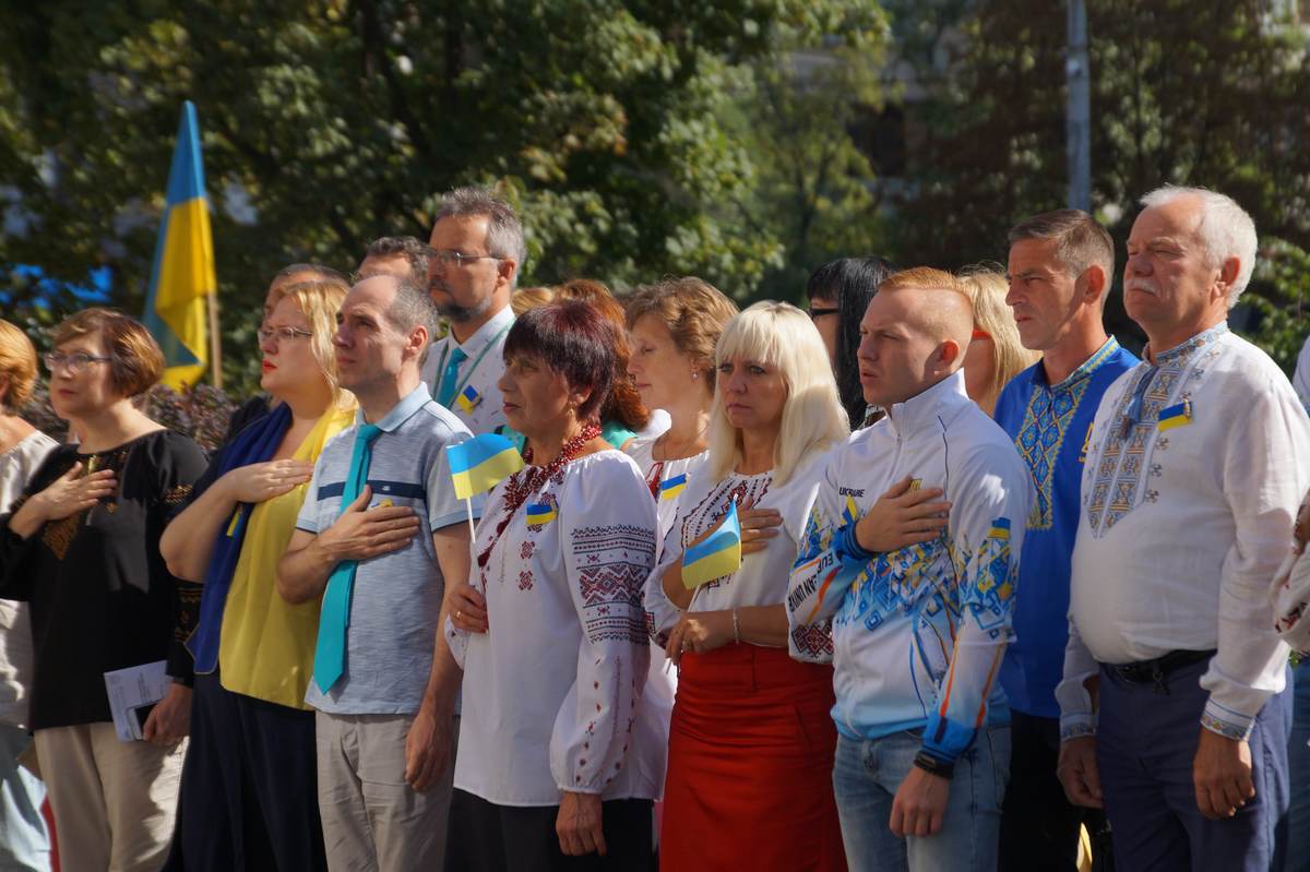 Учасники мали унікальну можливість послухати голос В’ячеслава Чорновола - легендарного політичного діяча славної епохи - саме тоді, 23 серпня 1991 року, коли до сесійної зали Верховної Ради вперше був внесений прапор України. Під супровід Гімну України синьо-жовтий стяг замайорів поруч з будівлею Університету. Право підняти національний символ надали студентам: Альоні Полуніхіній, Антону Черевашко, Анастасії Нечипуренко, Даніілу Цикальському, Карині Череповій, Богдану Неспірному, Катерина Ослоновій та Богдану Вакулюку. Представники футбольної команди поділились із присутніми своїми емоціями на VI Європейських іграх серед студентів у Португалії, коли замайорів український прапор на честь перемоги команди. Ліричною піснею "Моя Україна" усіх привітала студентка Інституту мистецтв Тетяна Куля