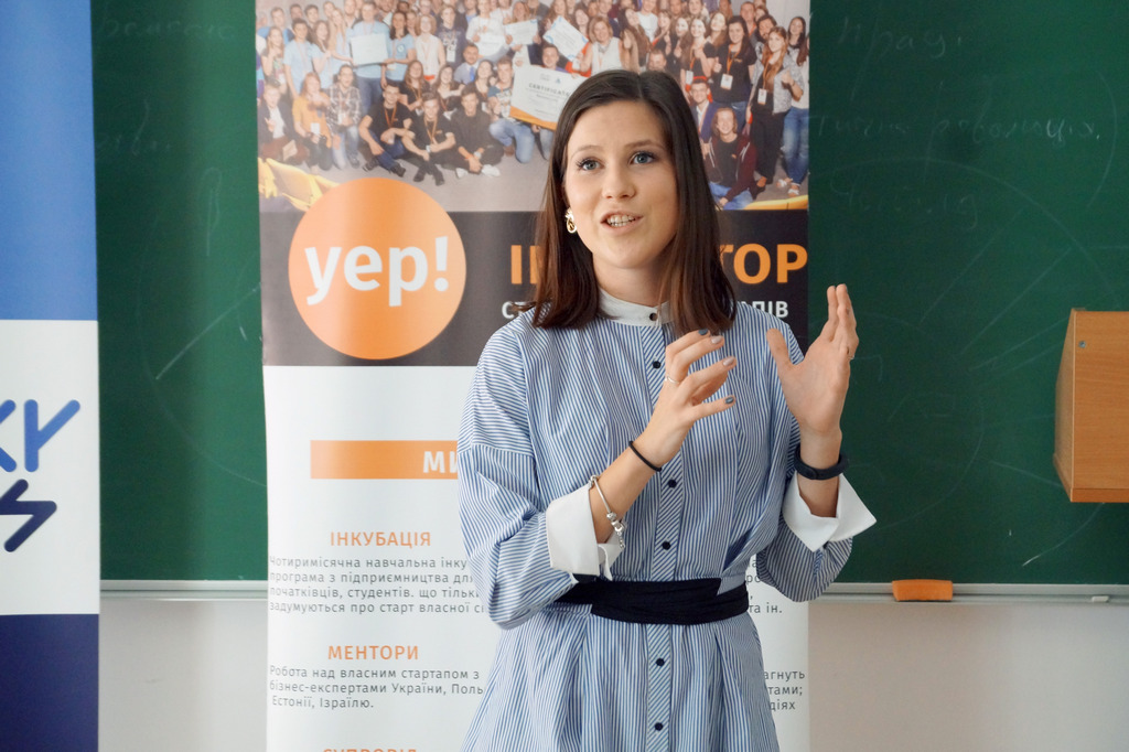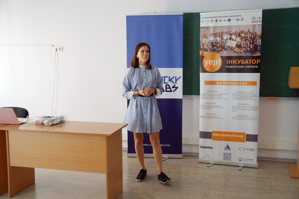 Захід розпочала Валерія Голерова – менеджер з міжнародного партнерства мережі академічних бізнес-інкубаторів Yep! Під час доповіді слухачі дізнались про основні аспекти функціонування бізнес-інкубаторів для молоді; що таке стартап та хто такі стартапери; що потрібно робити, щоб заснувати стартап в Україні та де шукати підтримки. Спікер звернула увагу на те, що кожний стартап має пройти певні етапи розвитку, а саме: «інкубація», «акселерація», «bridge», «експертиза». Також, всіх студентів було запрошено на навчання у підприємницький клуб Yep!, який відкрито на базі Київського університету імені Бориса Грінченка. В клубі відбуватимуться зустрічі з локальними підприємцями, обговорення нових ідей та проектів, тематичні перегляди фільмів та відео-лекцій. Місія клубу – розвиток підприємницької культури та мислення у студентів, стимулювання стартап руху серед молоді та зародження тренду на створення стартапів в університетах.