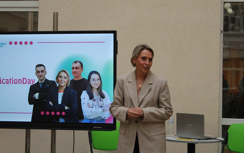 Відкрила зустріч Тетяна Поліщук – заступник декана Факультету журналістики з науково-педагогічної та соціально-гуманітарної роботи. Вона розповіла про діяльність Факультету та заінтригувала гостей сюрпризом.