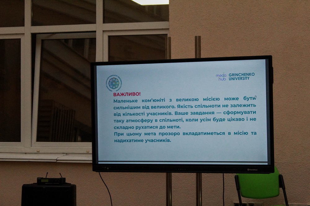 5 жовтня 2024 року в Галереї імені Віктора Огнев'юка Київського столичного університету імені Бориса Грінченка пройшов Communication Day в межах діяльності Медіахабу Університету Грінченка та соціального проєкту «З Києвом і для Києва». Перша зустріч затишного камерного спілкування відбулася з представниками громадських організацій, які прагнуть розвивати українське суспільство, покращуючи навички комунікації та репрезентації себе в медіапросторі.