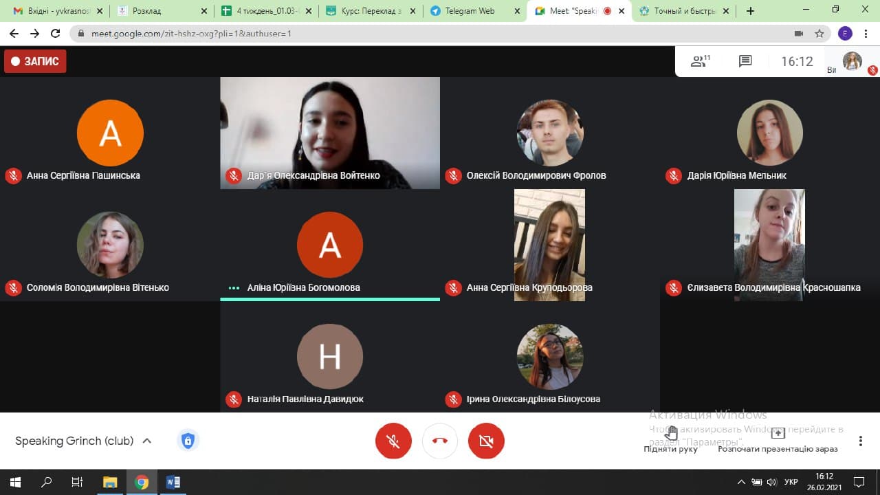 Зустрічі англомовного клубу «Speaking Grinch» відбуваються у другу та четверту п’ятницю щомісяця. Поки що вони проходять у дистанційному форматі.