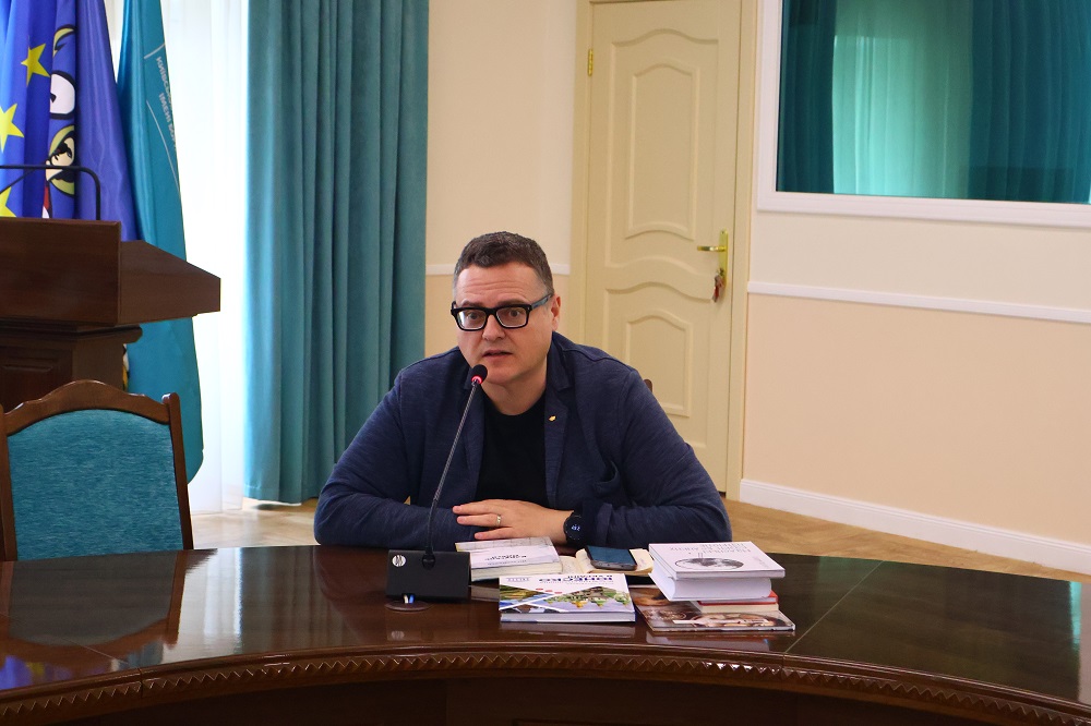 Наступним спікером став Ігор Степурін – виконавчий директор Української асоціації видавців та книгорозповсюджувачів, співзасновник Благодійного фонду «Бібліотечна Країна». Він наголосив на ролі української книги як чинника просвіти, культурної тяглості та єдності. Попри складні обставини, в Україні та за кордоном відкриваються нові книгарні, з’являються нові видавничі ініціативи. Пан Степурін особливо підкреслив важливість просування української літератури на міжнародному рівні і потребу у фахівцях з видавничої справи, медіапродюсування на внутрішньому ринку, запевнив студентів освітніх програм «Медіапродюсування», «Видавнича справа та редагування» у відкритості Асоціації та видавництв, порадив активно здобувати необхідні компетентності – багато читати, опановувати іноземну мову, навички редагування, просування української книги.