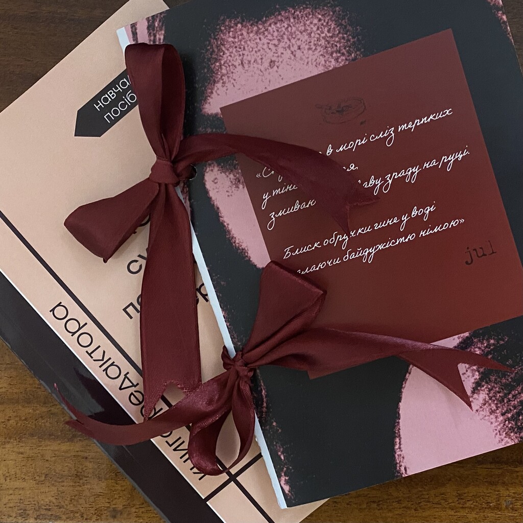 На столі розгорнулася справжня міні-виставка: рожеві блокноти зі стразами, темний «Death Note», брошури з поезією та навіть книги власного авторства студенток. Учасники по черзі розглядали роботи, жваво обговорювали деталі й голосували за найцікавіші. Атмосфера була легкою й захопливою, а вибір – непростим: розмаїття виробів змушувало вагатися між кількома фаворитами.