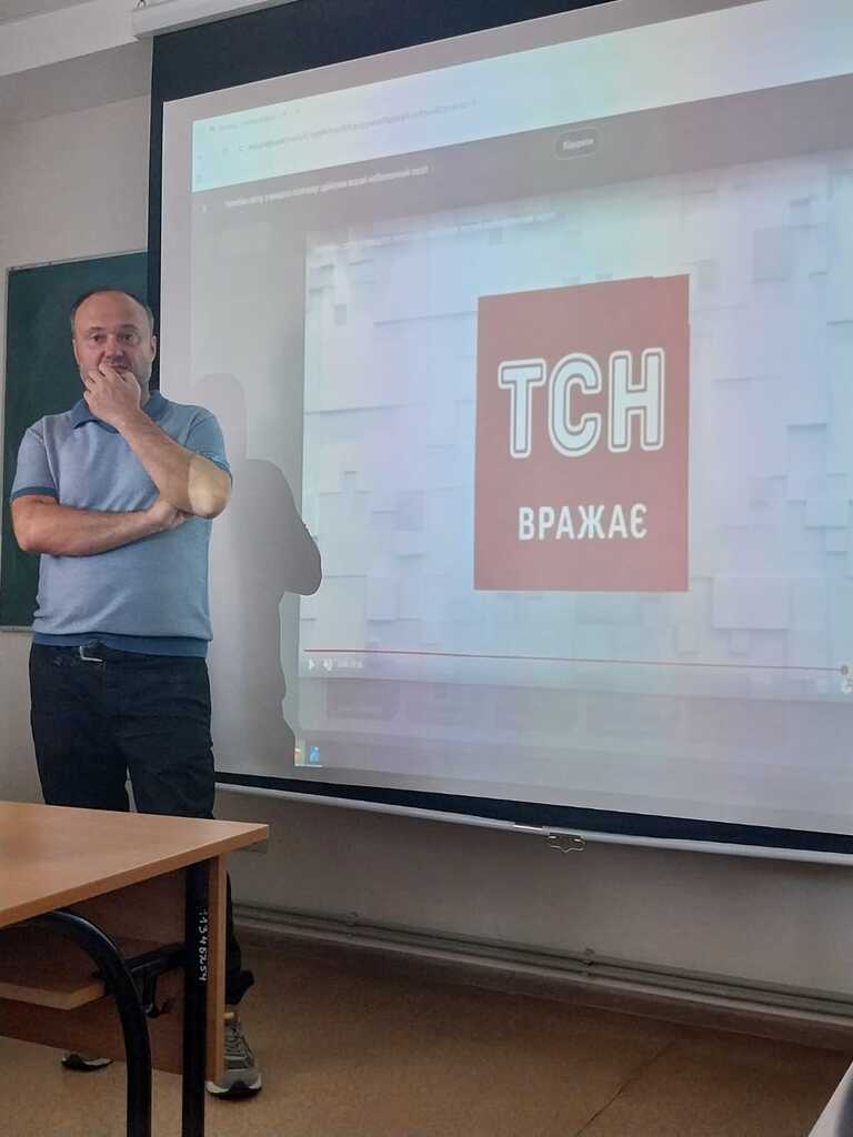 Зустріч пройшла у формі живого діалогу, під час якого гість поділився своїм професійним досвідом, розповів про виклики журналістики в умовах війни та згадав найяскравіші епізоди з власної практики. Тема обговорення – «Особливості журналістської діяльності в умовах воєнного часу: досвід та секрети професії репортера».
