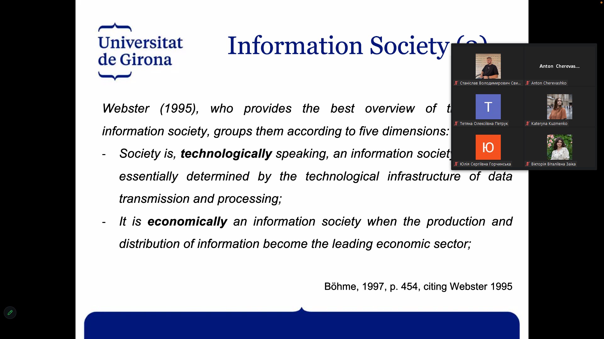 7 березня 2024 року професор Університету Жирони (Іспанія) Моніка ПУНТІ-БРУН прочитала онлайн лекцію здобувачам магістерських освітніх програм Факультету журналістики Університету Грінченка. Присвячена актуальним питанням ролі трансмедіа в сучасних умовах, лекція викликала жвавий інтерес у слухачів. Після завершення лекції учасники мали змогу задати професорці запитання.